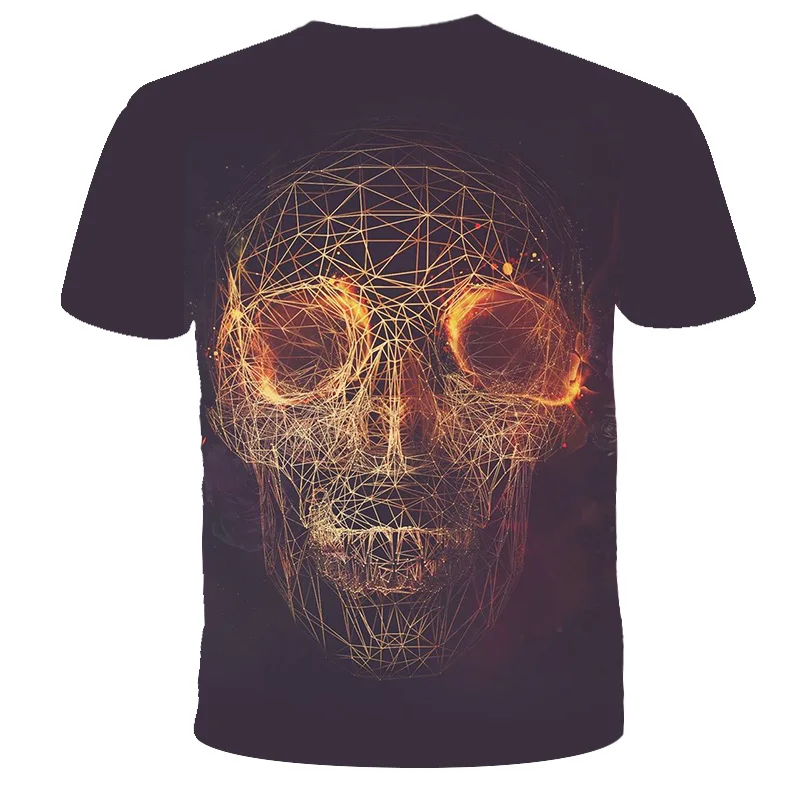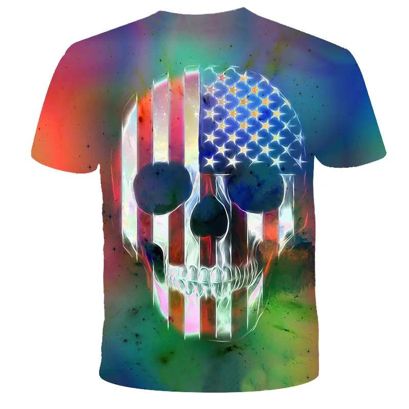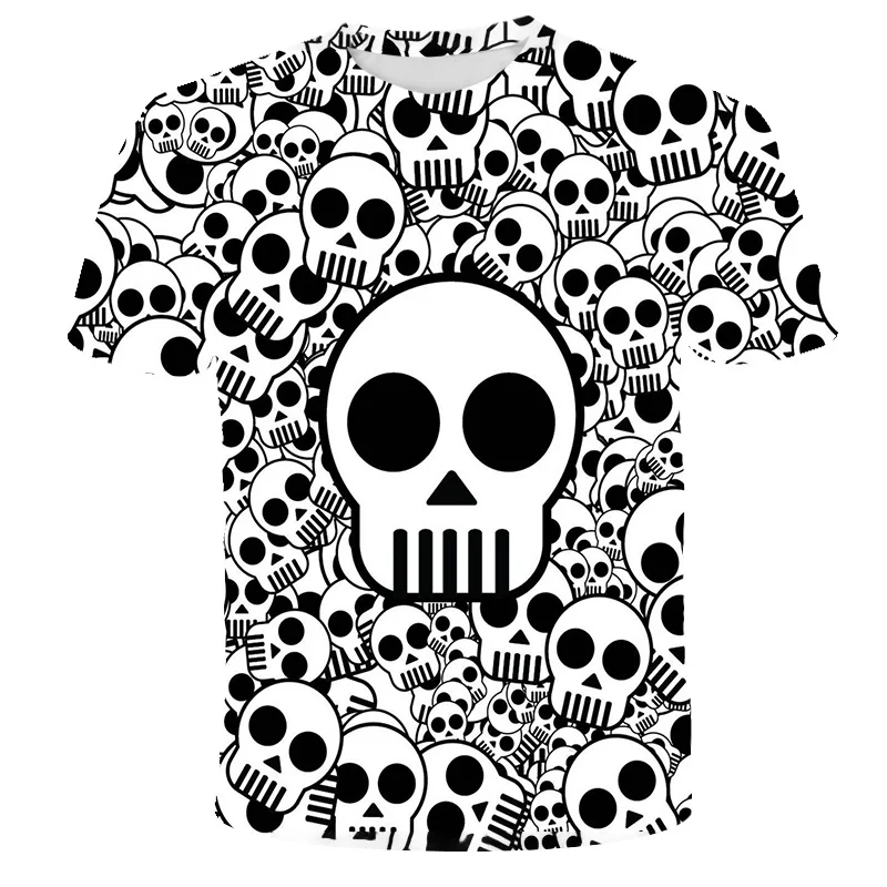 Футболка с 3D-принтом черепа для мальчиков и девочек, футболка с круглым вырезом и короткими рукавами, городская модная смешная стильная футболка 2021 для детей и девочек