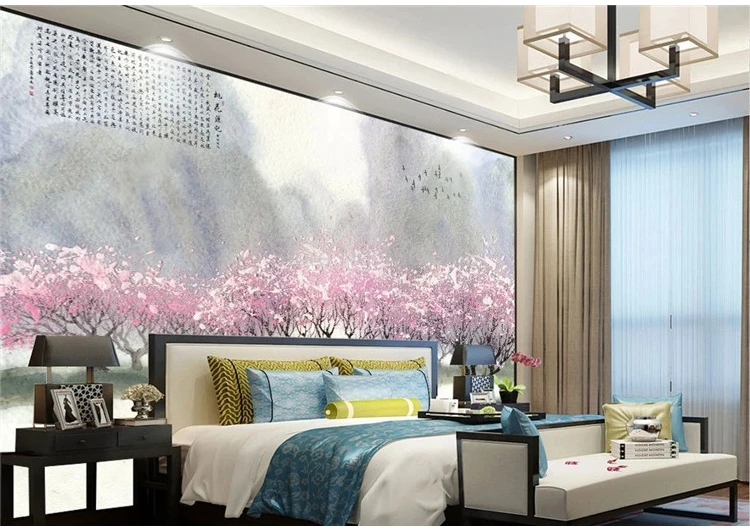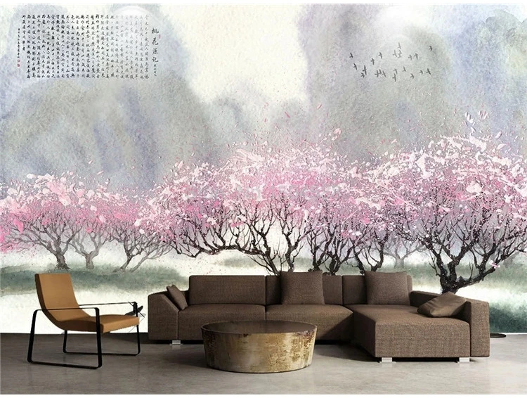 Настенные 3D-обои в китайском стиле на заказ, красивая картина маслом, цветение персика, цветок леса, фреска, гостиная, спальня, домашний декор