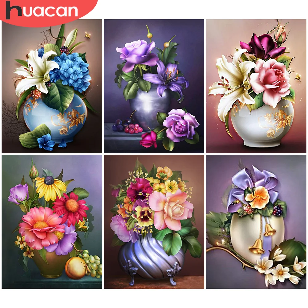 HUACAN Алмазная картина Лилия полная дрель квадратная Алмазная вышивка цветок картина Стразы Алмазная ваза-мозаика домашний декор
