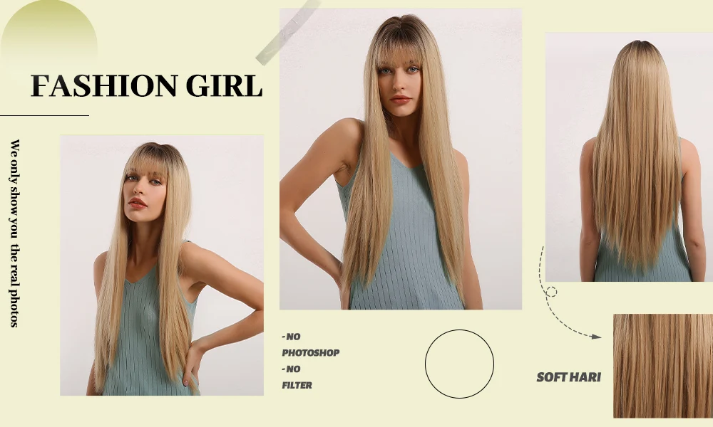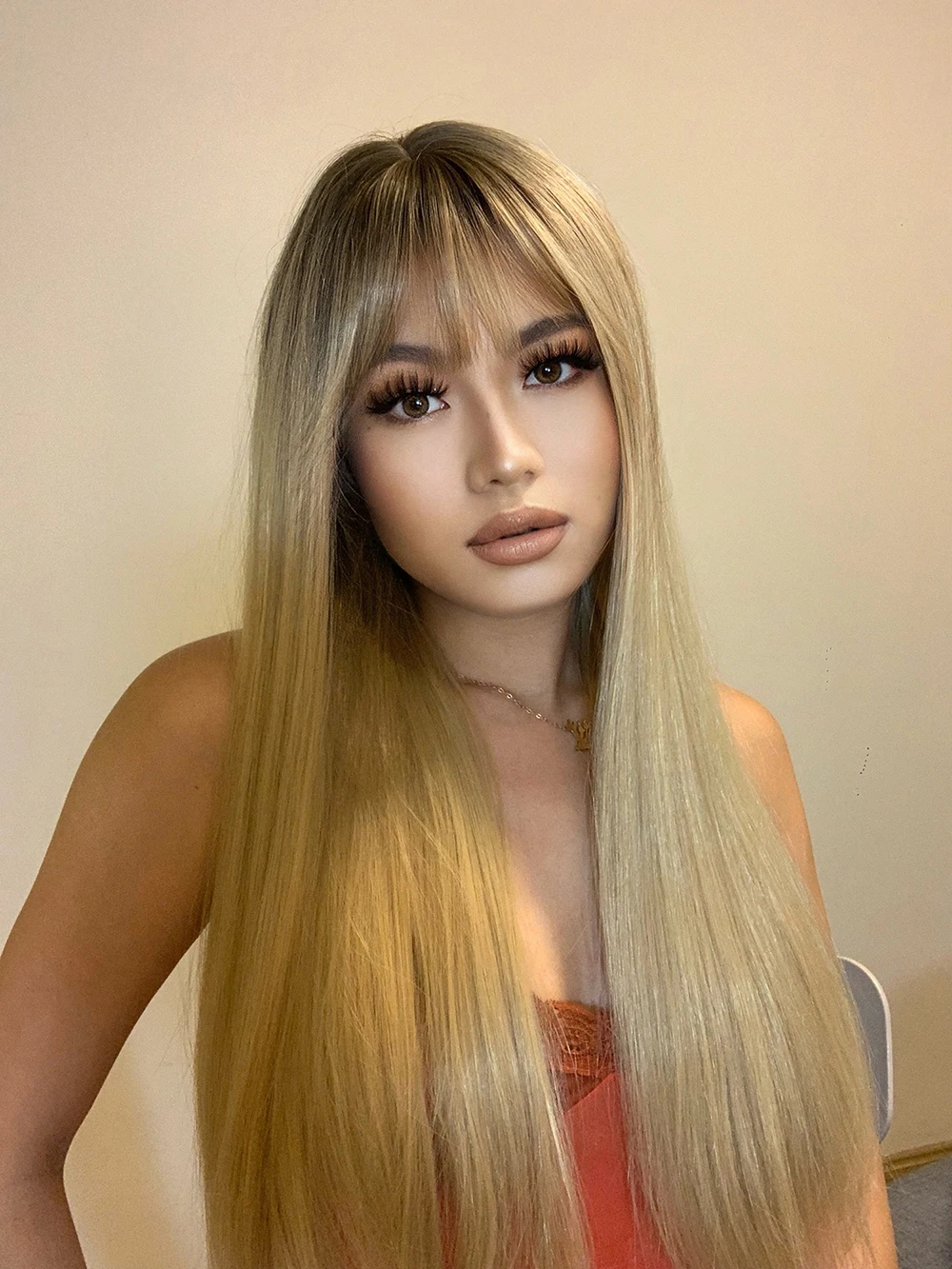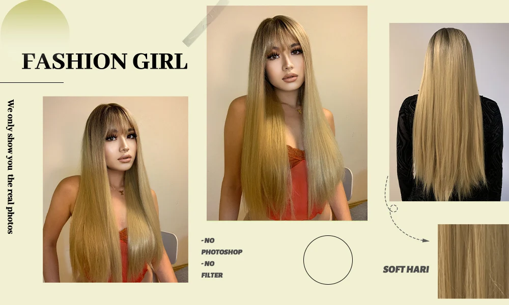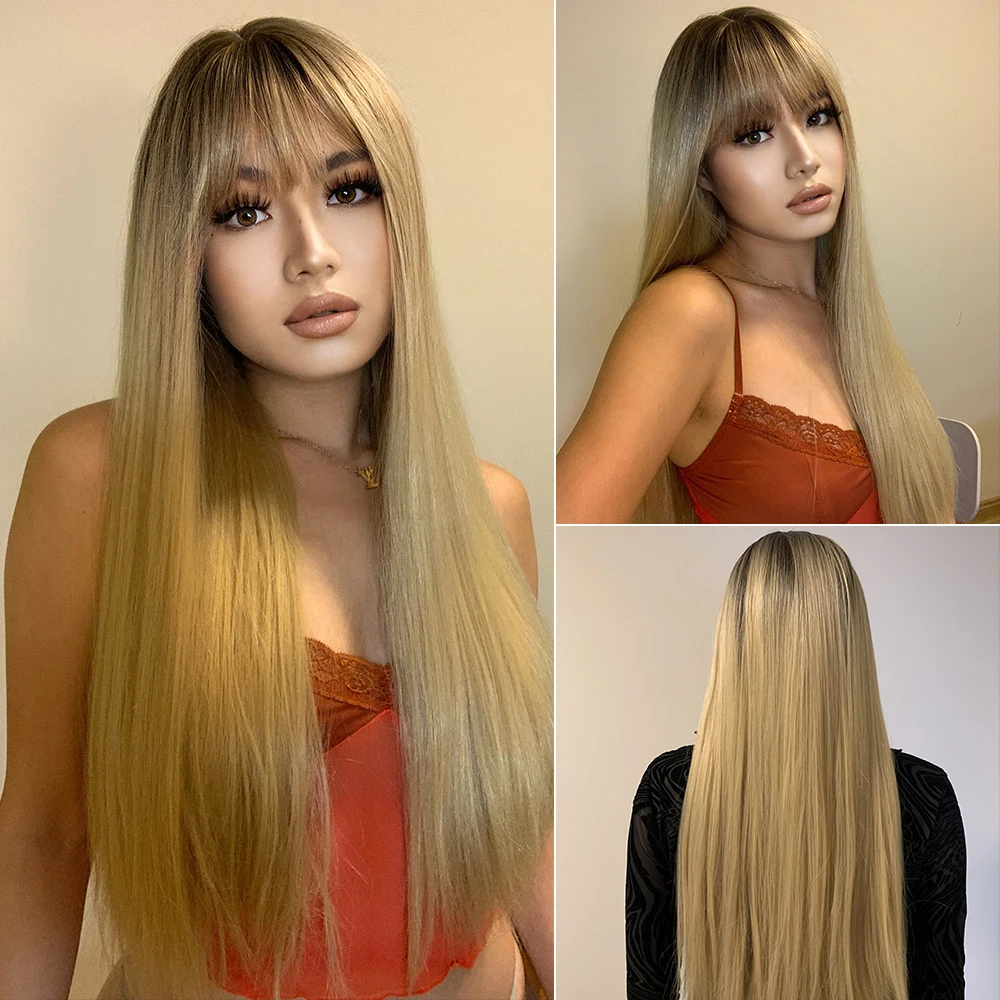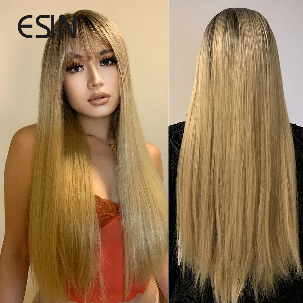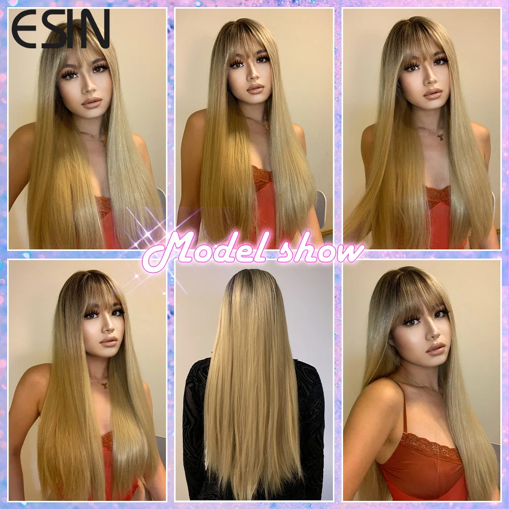 ESIN синтетические волосы длинные прямые темные коричневые корни Омбре к светлым парики с челкой для женщин натуральный термостойкий парик