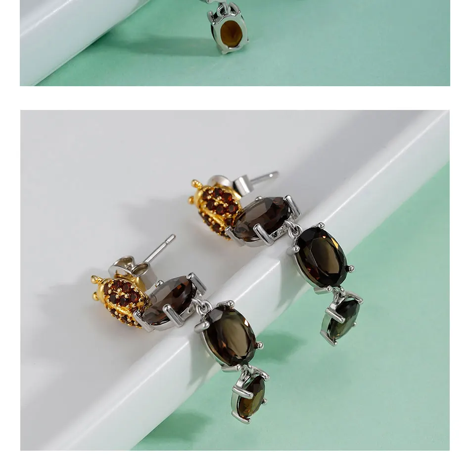 Женские серьги-подвески из серебра 925 пробы, с натуральным дымчаты...