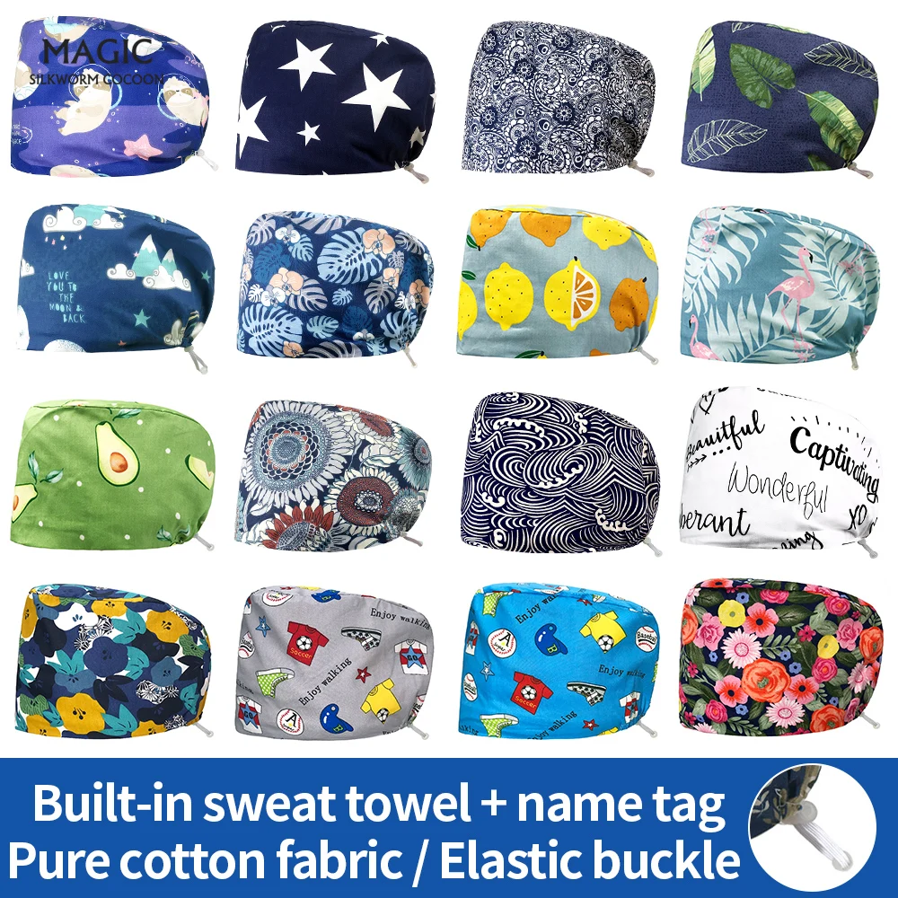 Высококачественные вращающиеся шапки с принтом медсестра Регулируемая женская шапка из искусственного хлопка впитывающая пот