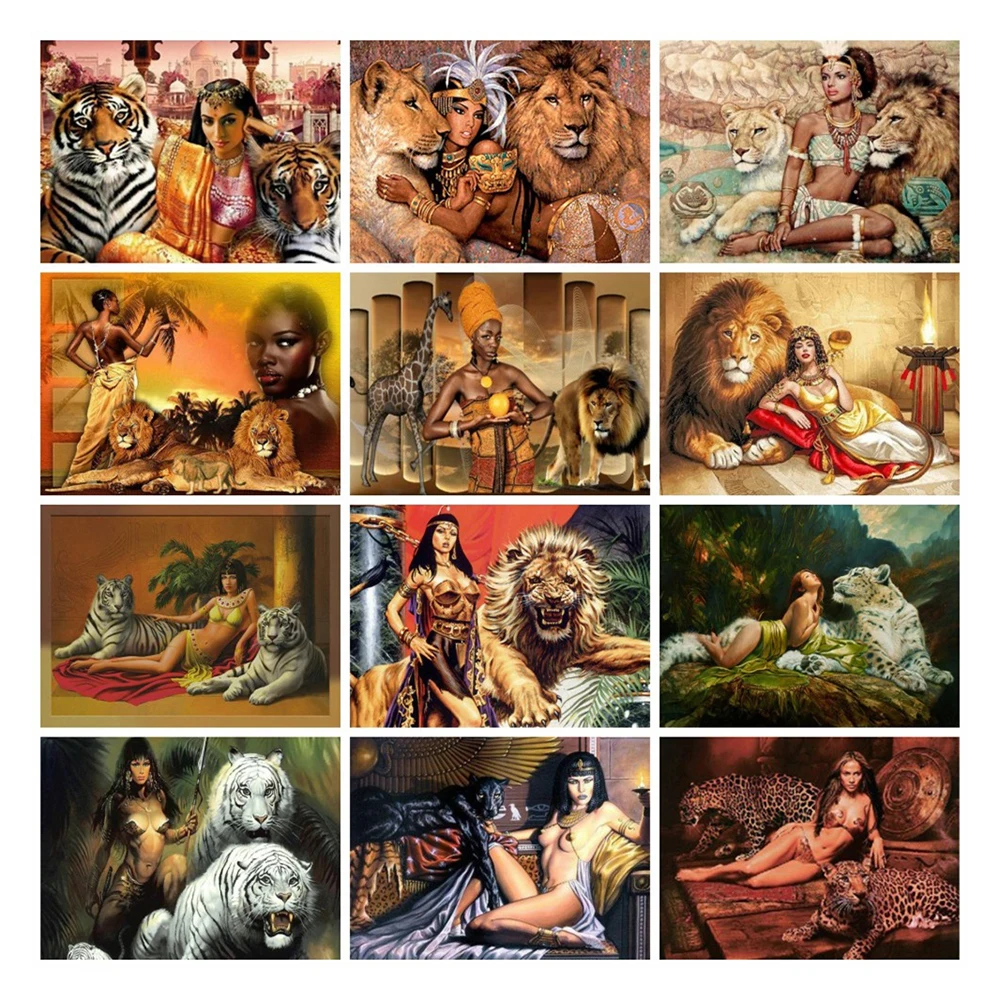 Холст Размер 5d Diy Алмазная картина мозаика Лев женщина домашний декор Алмазная вышивка, портрет животное алмазное искусство