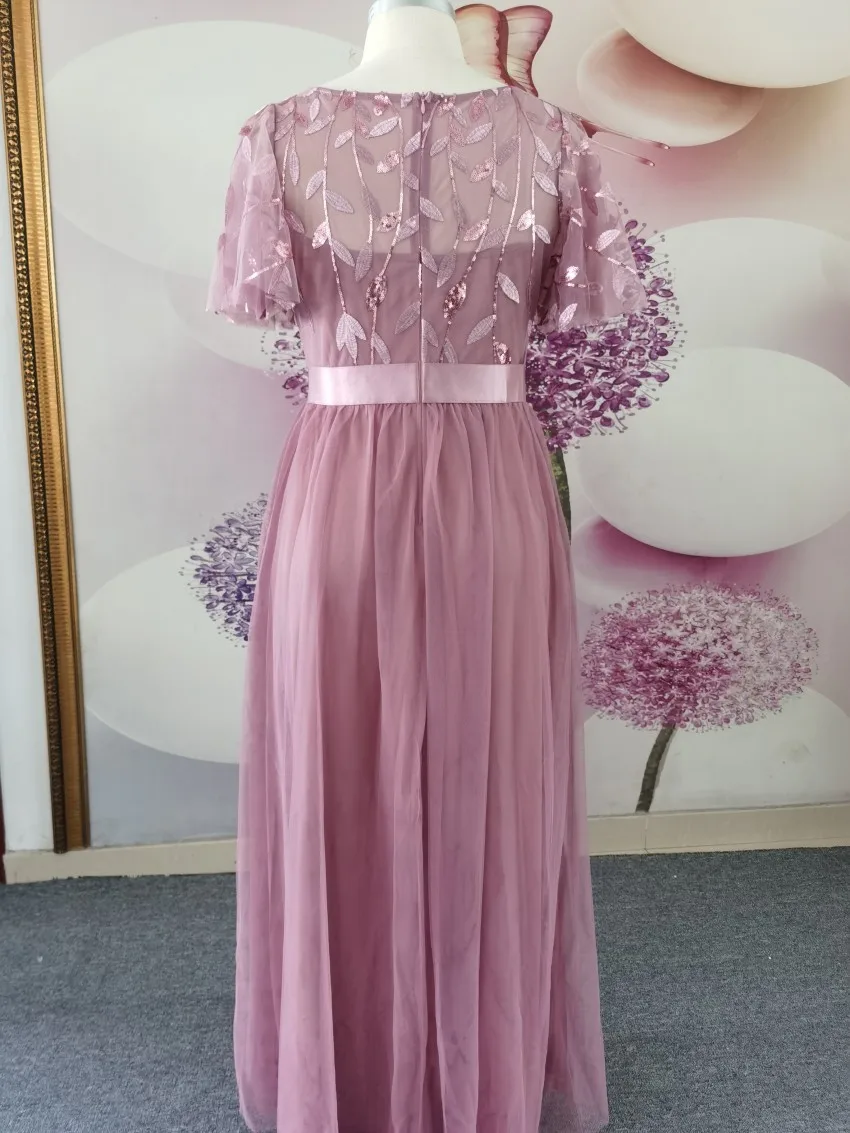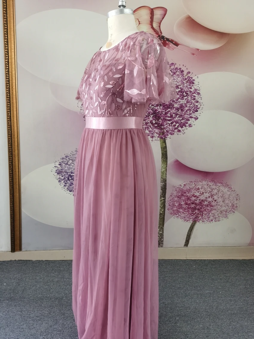 Элегантные платья для выпускного а-силуэта с коротким расширяющимся книзу рукавом длиной до щиколотки блестками и аппликацией платья для вечеринок
