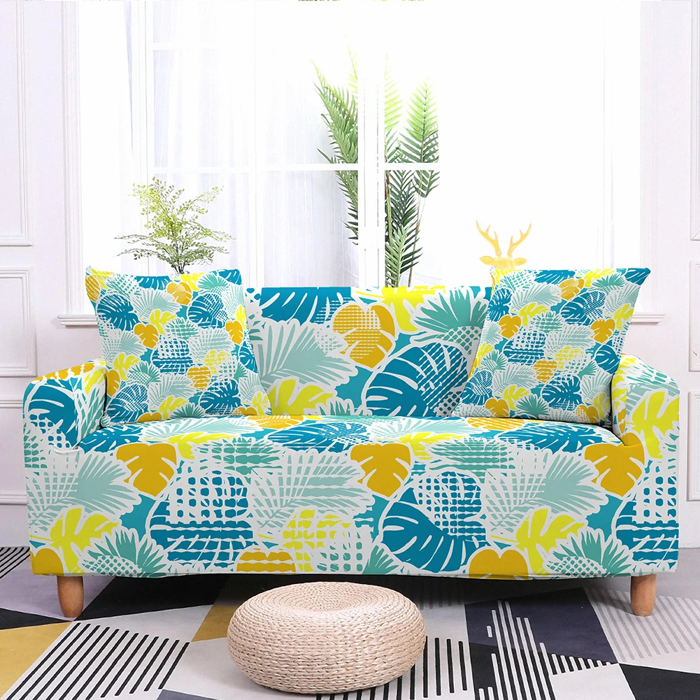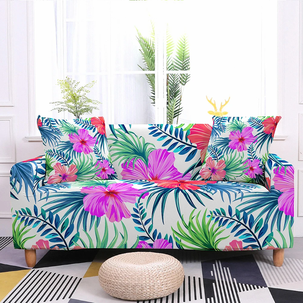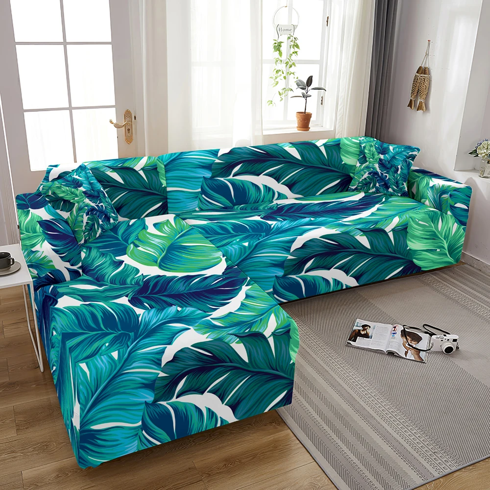 Эластичный чехол для дивана в гостиную, чехлы для диванов с тропическими листьями, чехлы для шезлонов, чехлы для кресел, угловой диван, чехол для дивана