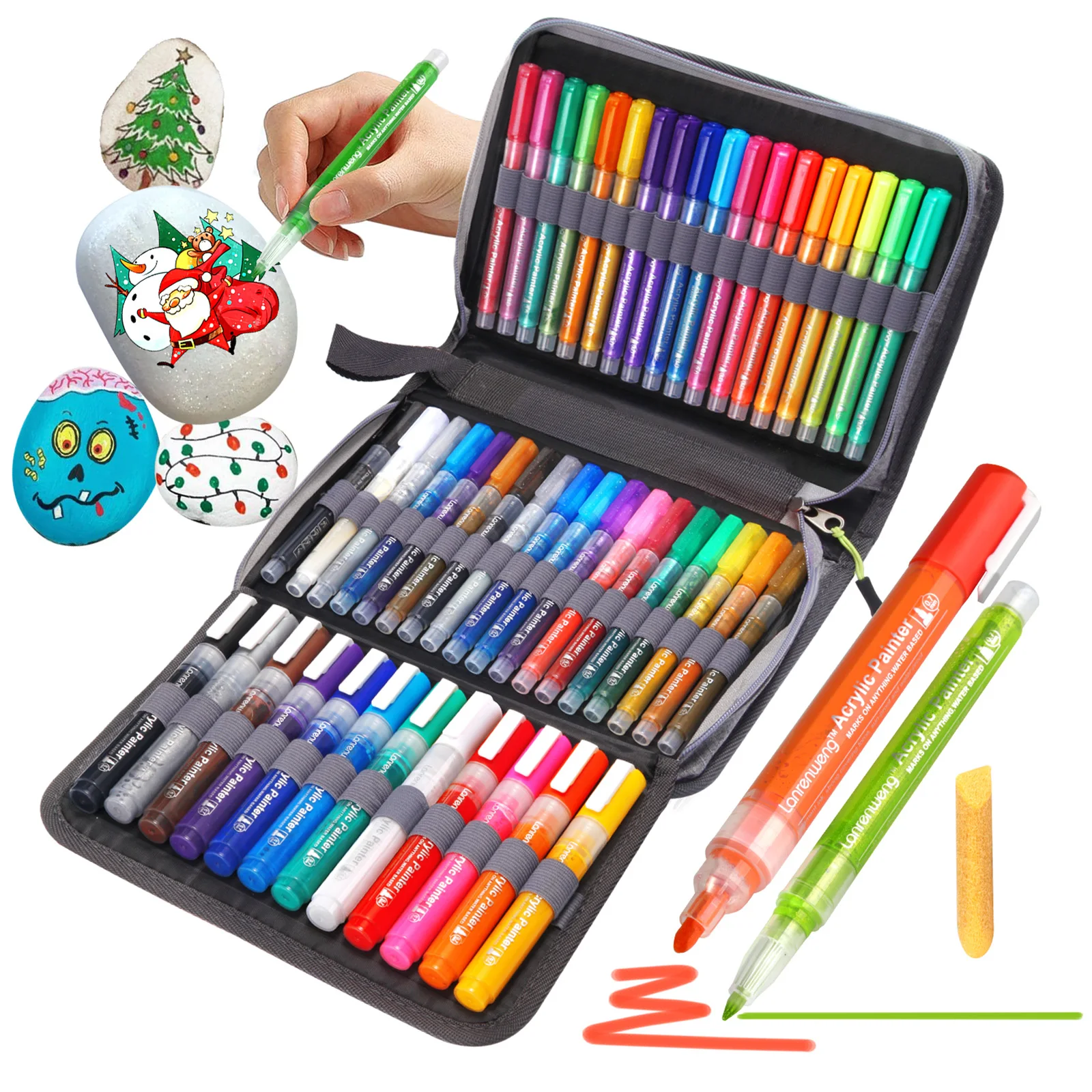 Набор маркеров для рисования акриловыми красками, 48 цветов, в холсте, с сумкой для покраски камней, керамики, стекла, дерева, ткани, подарки