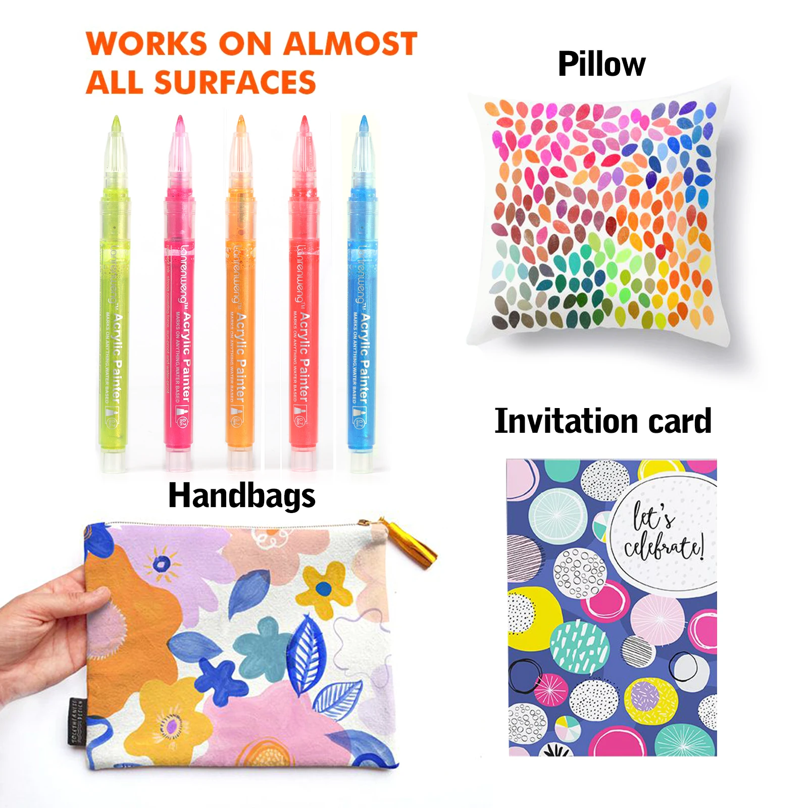 Средний Наконечник: 5 ммАкриловые чернила: на водной основеДоступно в 12 цветахПодходит на поверхности: керамические кружки, белые или черные бумажные скрапбукинги, фотоальбом, ткань, холст, обувь, камни, металл, эмаль, дерево, кожа, пластик и т. Д.