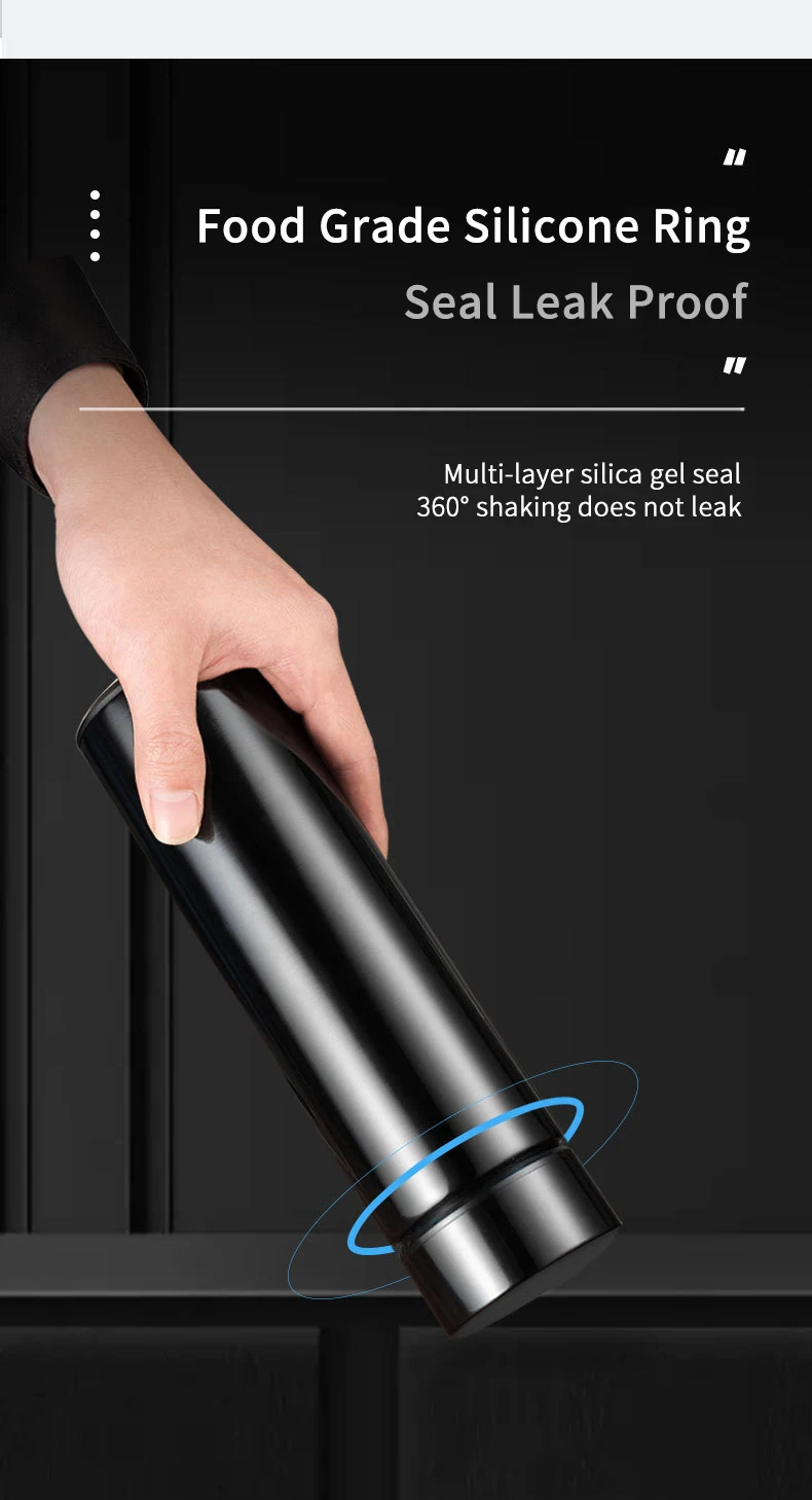 Крышка имеет дизайн дисплея температуры, упаковка идеальна, качество термоса хорошее, внешний вид высокий, Интеллектуальный температурный дисплей чувствителен, емкость довольно большая, герметичность хорошая, и нет утечки воды.