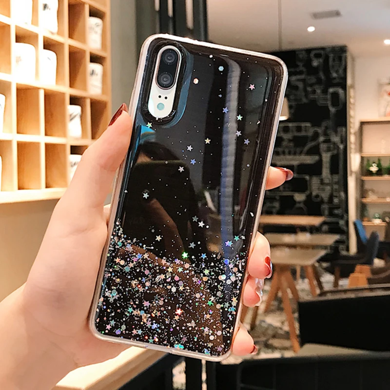 Блестящий Прозрачный чехол из ТПУ для телефона Huawei Mate 10 20 30 40 Pro Honor 10 20 30 Lite 50 SE V10 V20 V30, задняя крышка, чехлы