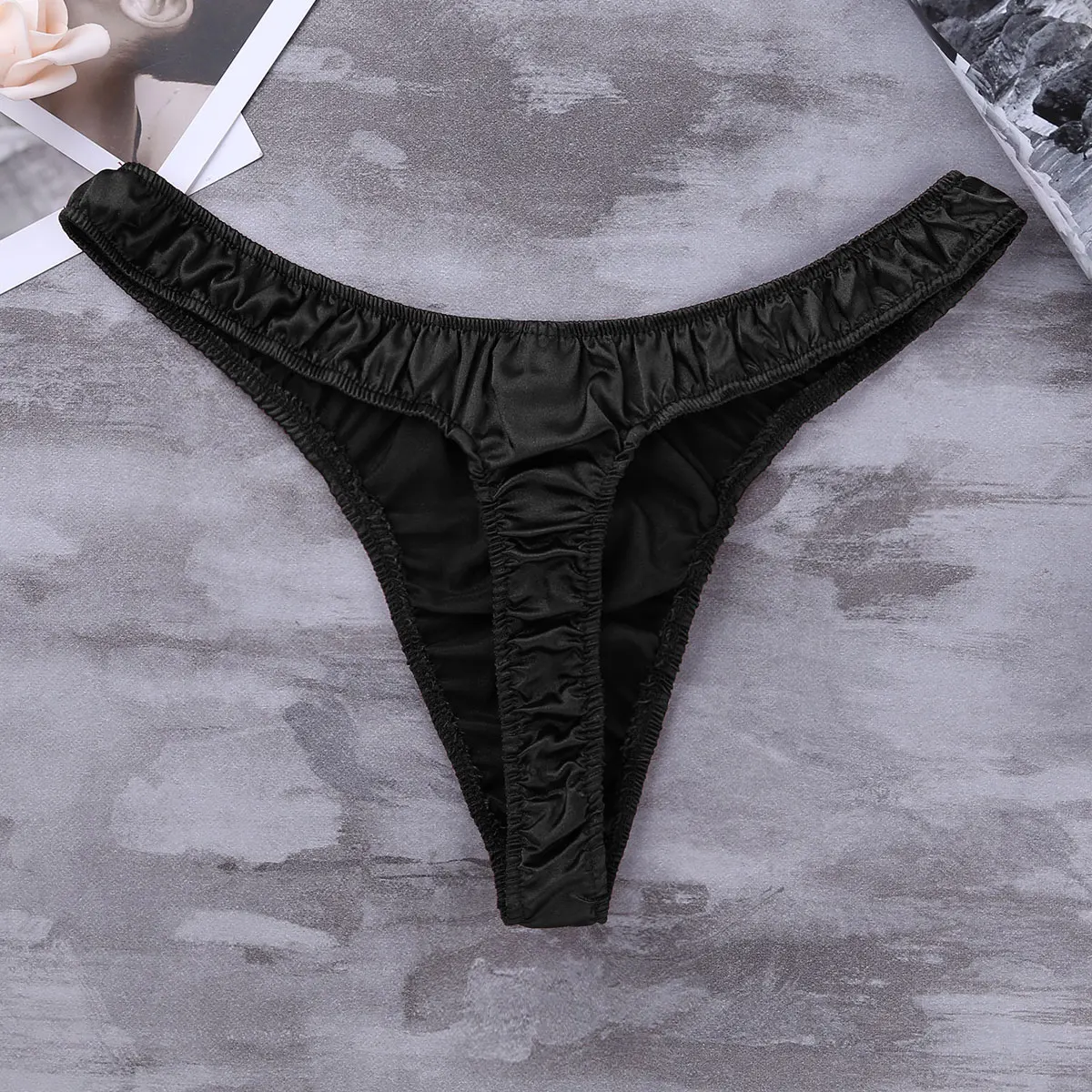 Мужские трусы, сексуальное нижнее белье для мужчин, трусы для мальчиков, нижнее белье, мягкие блестящие атласные мужские трусы с оборками, шорты, бикини, стринги, трусы
