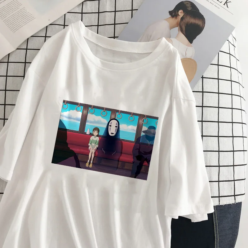 Футболка женская оверсайз с принтом Chihiro, милая рубашка с коротким рукавом и графическим принтом в стиле аниме, одежда в стиле Харадзюку, Ullzang