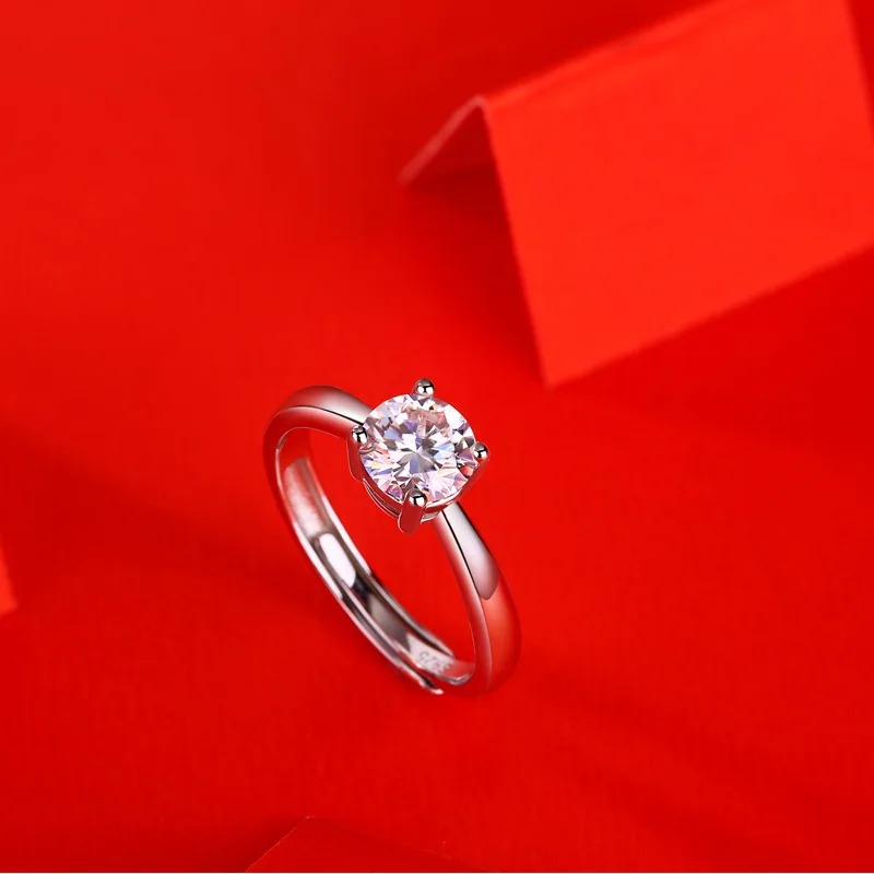 Женское Обручальное кольцо с муассанитом, регулируемое кольцо из се...