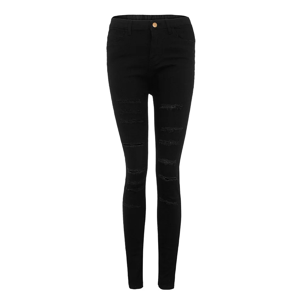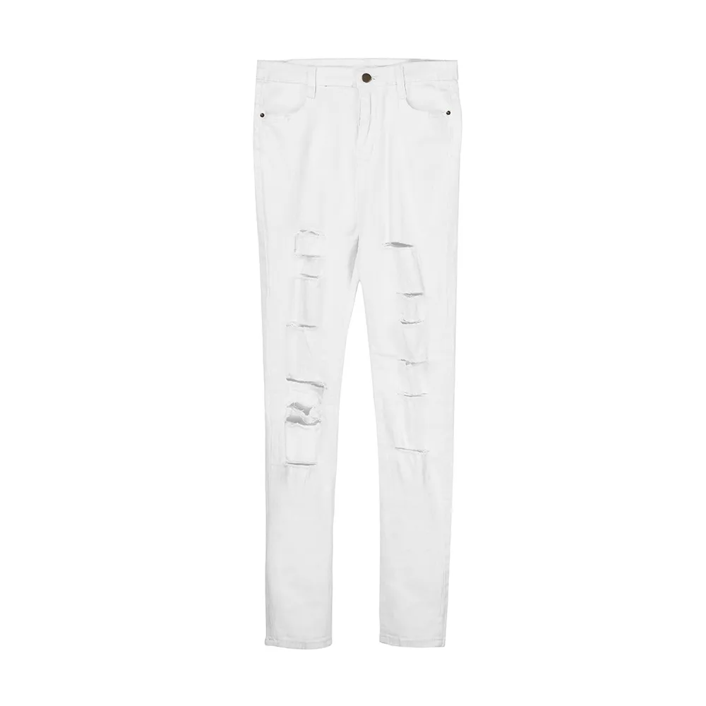 Новые черные и белые эластичные рваные джинсы, узкие джинсы, женские брюки-карандаш ниже колена, повседневные брюки