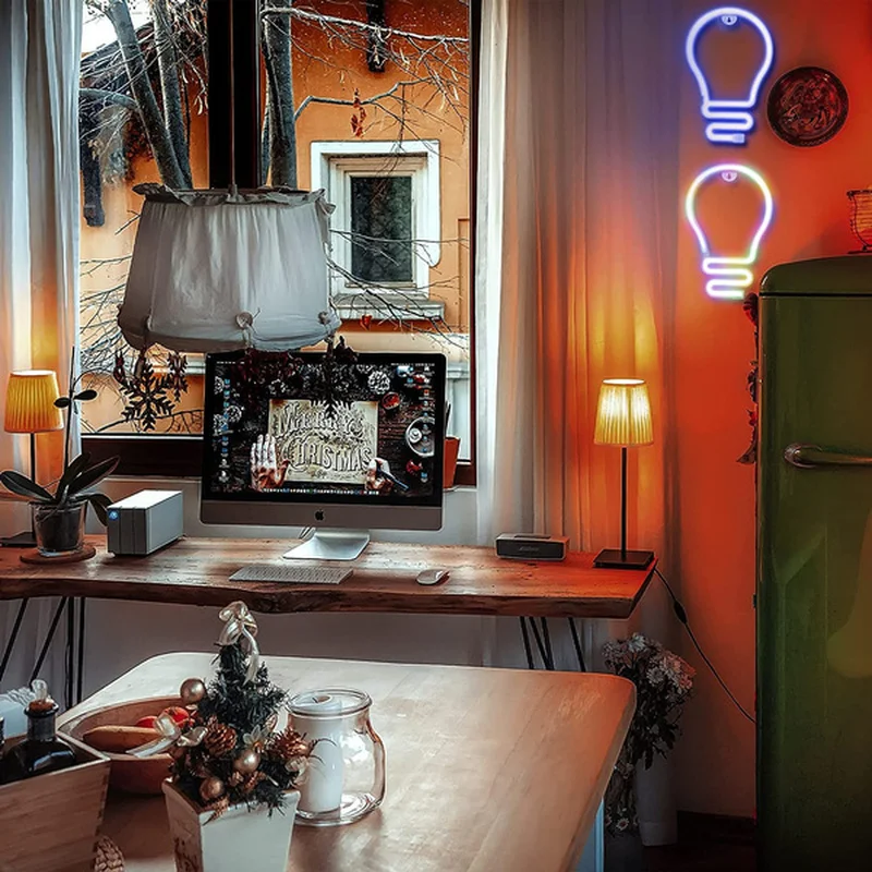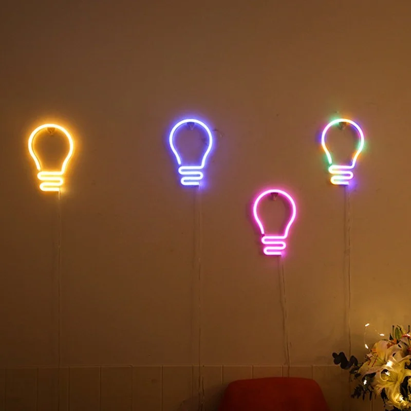 Светодиодный неоновый ночсветильник в форме лампы, настенный художе...
