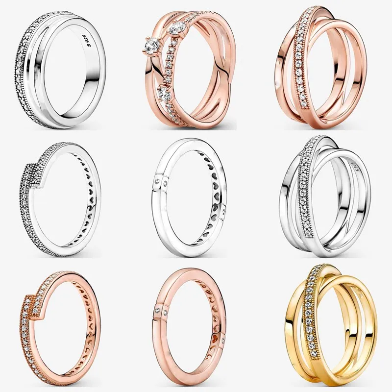 925 пробы Серебряное Сверкающее перекрывающееся кольцо с тремя коль...