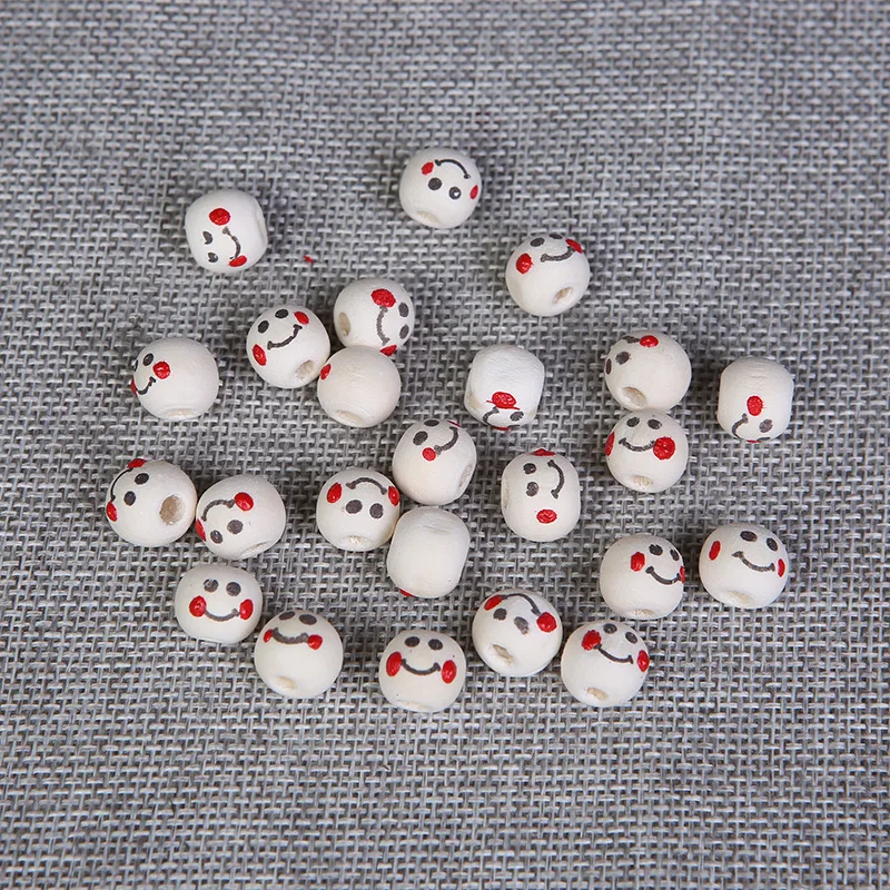 Деревянные бусины с улыбающимся лицом, круглые деревянные бусины для кукол, бусины с отверстиями для рукоделия, украшения сделай сам, 100 шт., 10 мм