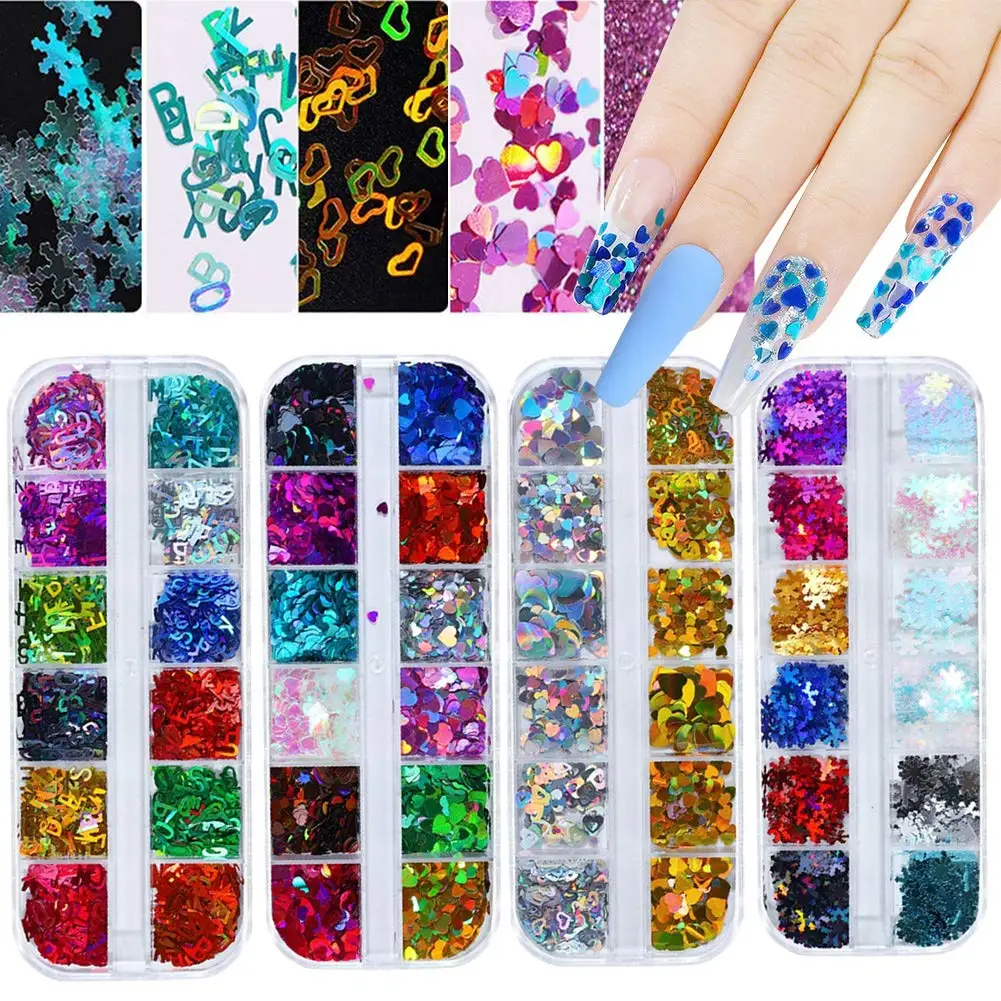 Цветные полые круглые Блестки для ногтей, 12 обвязок, разноцветный ...