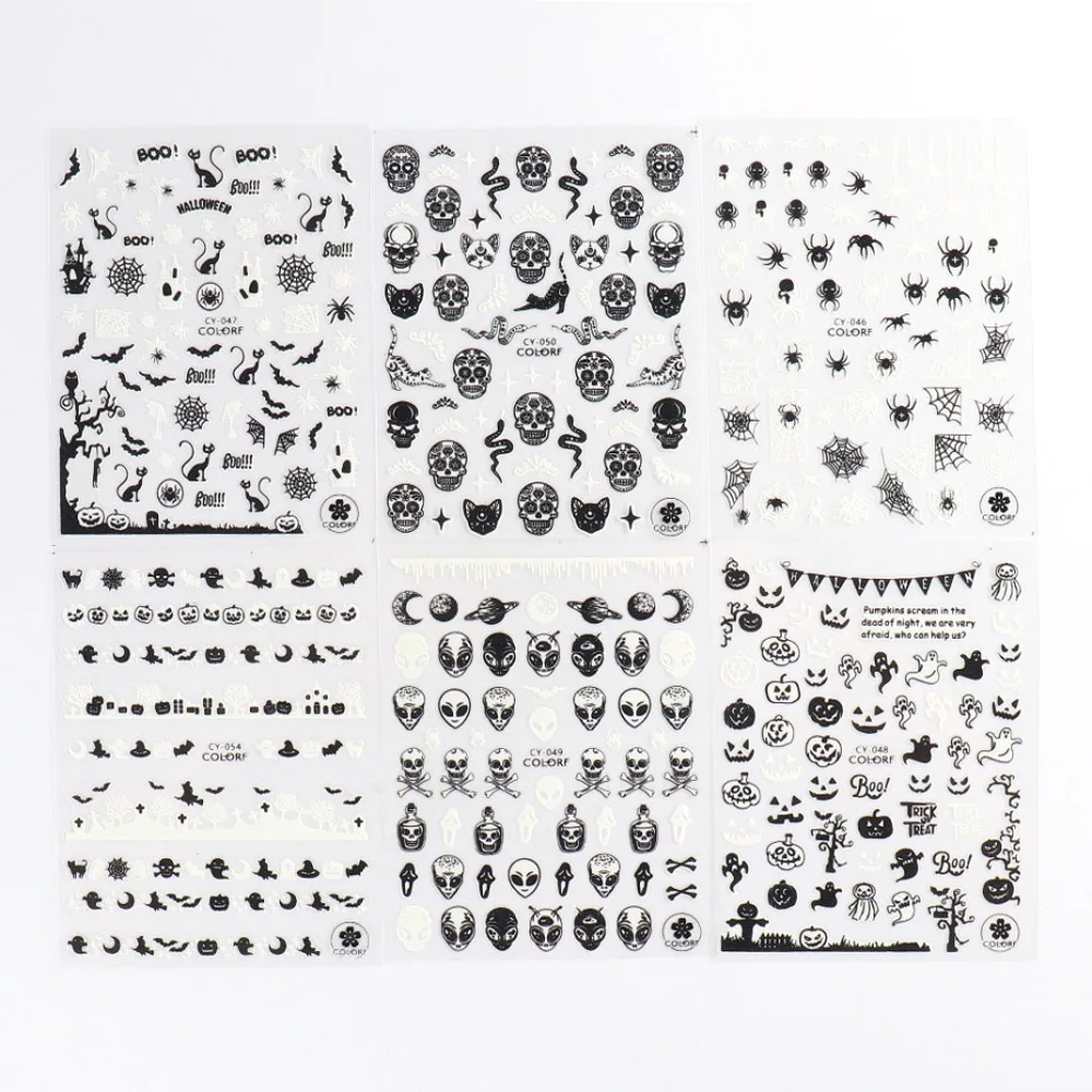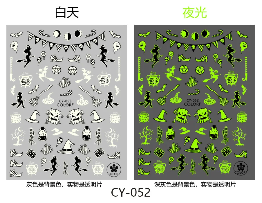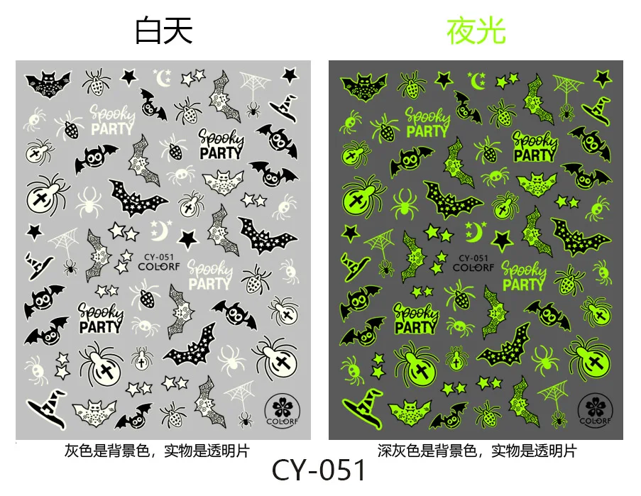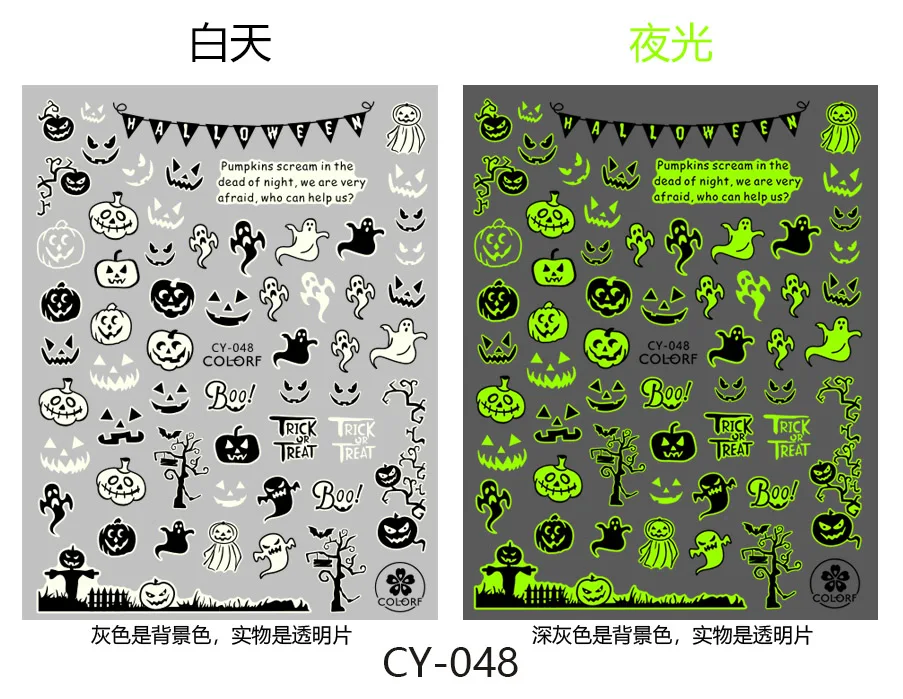 Светящаяся наклейка на Хэллоуин для дизайна ногтей 1 шт. 3D Cartton AlienGhost светится в темноте слайдер на заднюю панель клеевая наклейка маникюрные украшения VI5