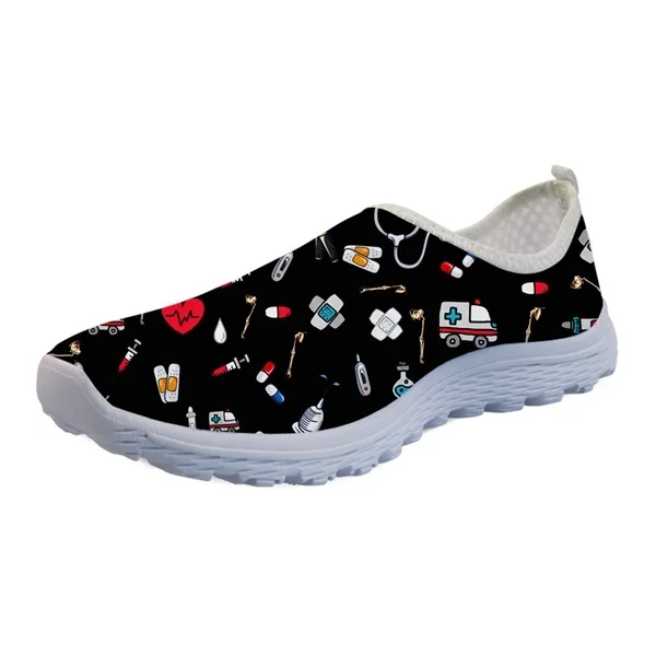 Кроссовки женские белые без шнуровки, милая обувь для кормящих врачей, с медицинским принтом, спортивные лоферы, обувь для бега, на лето