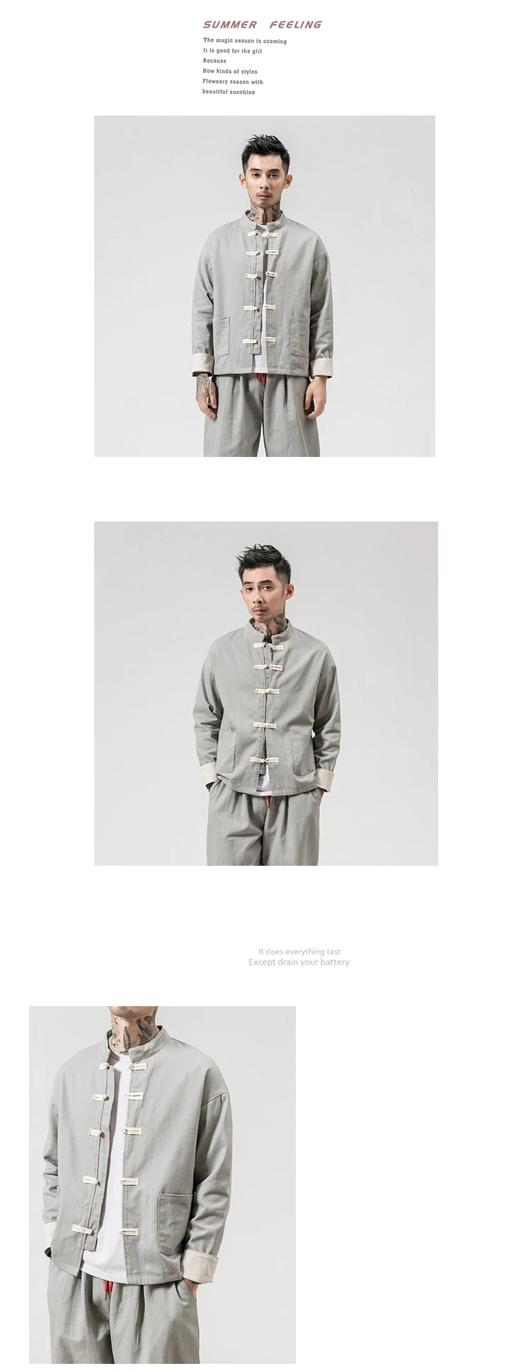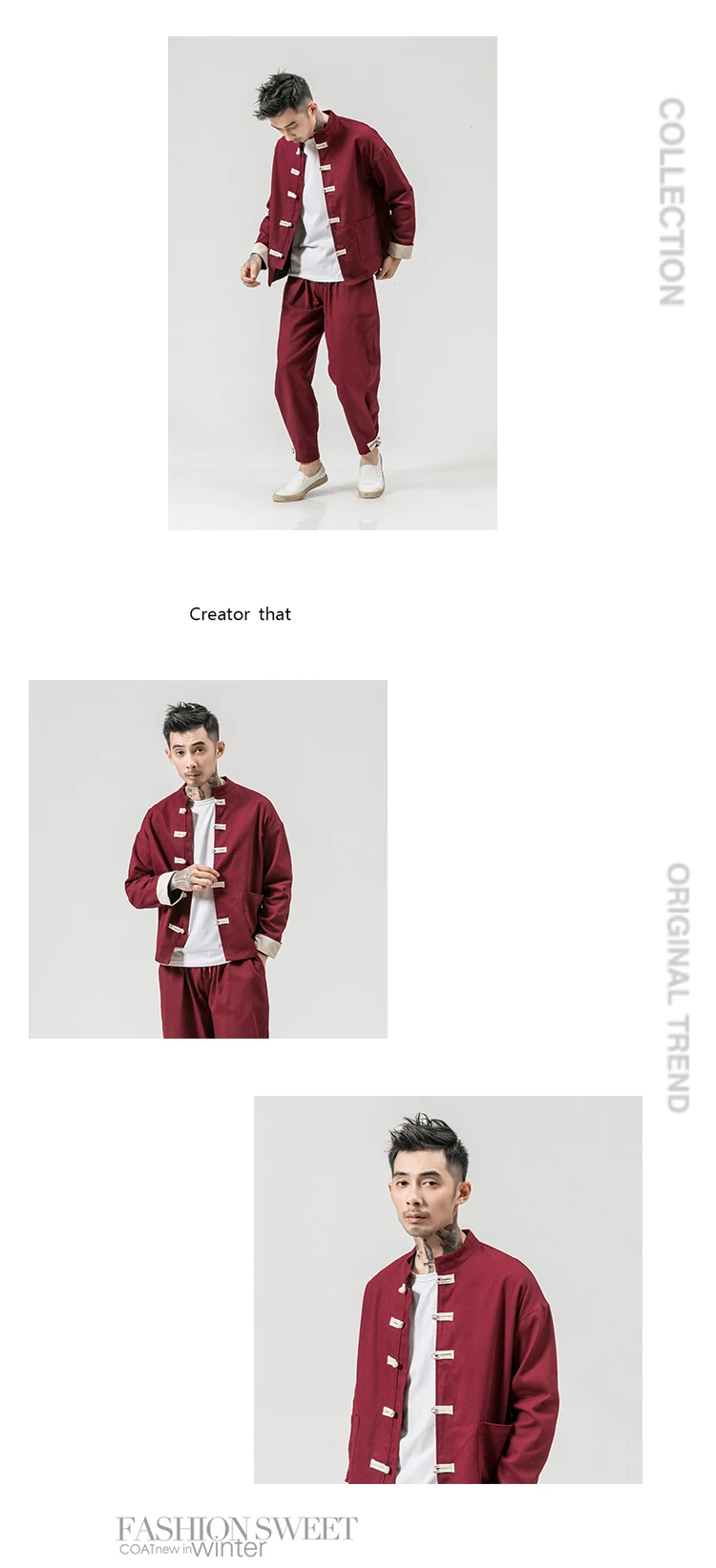 Мужские топы в китайском стиле Hanfu, штаны, костюм Тай-Чи, кунг-фу...
