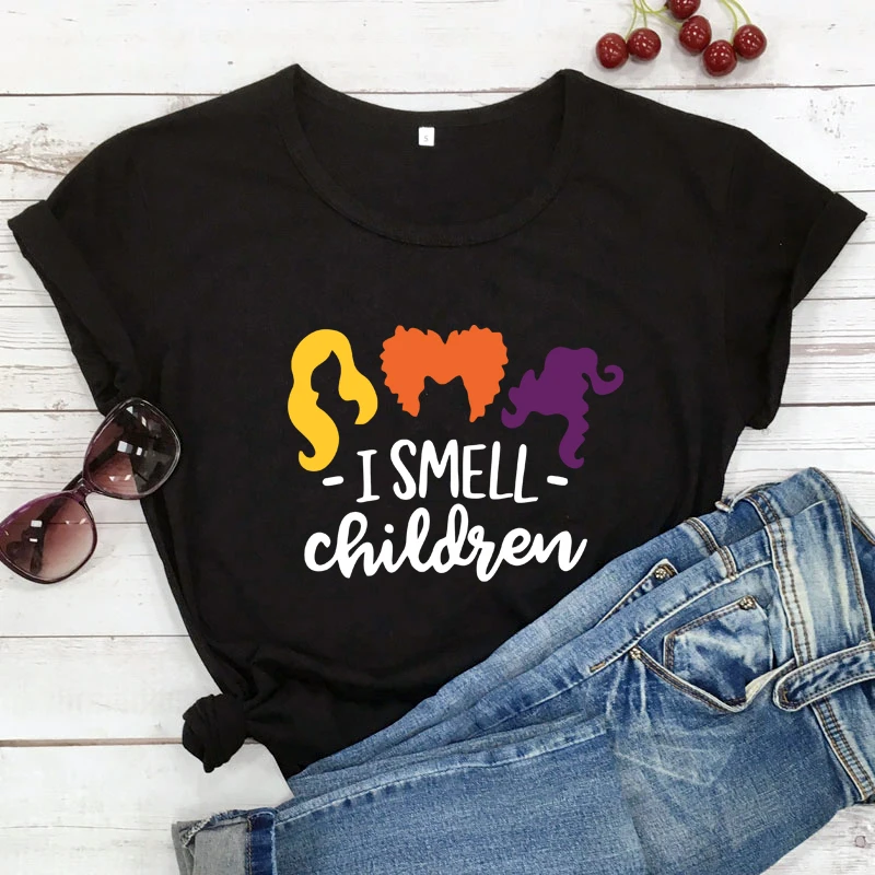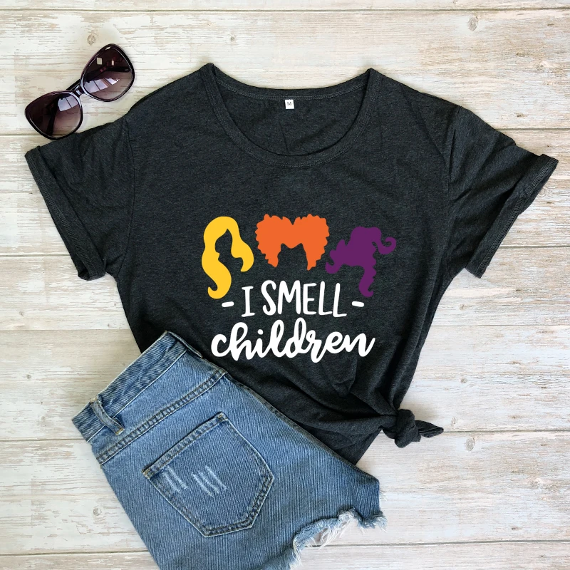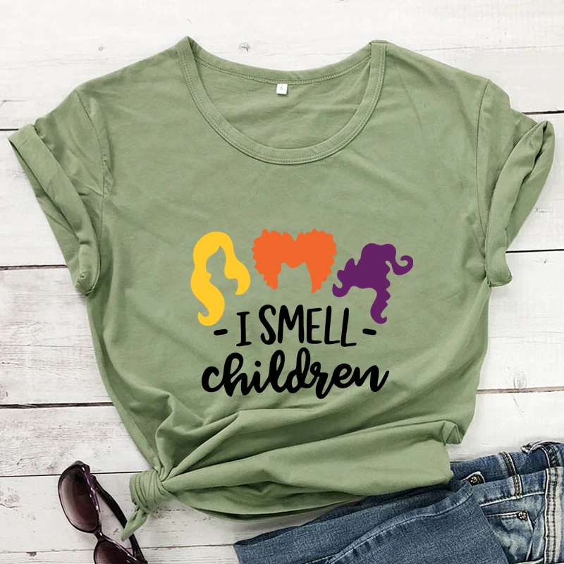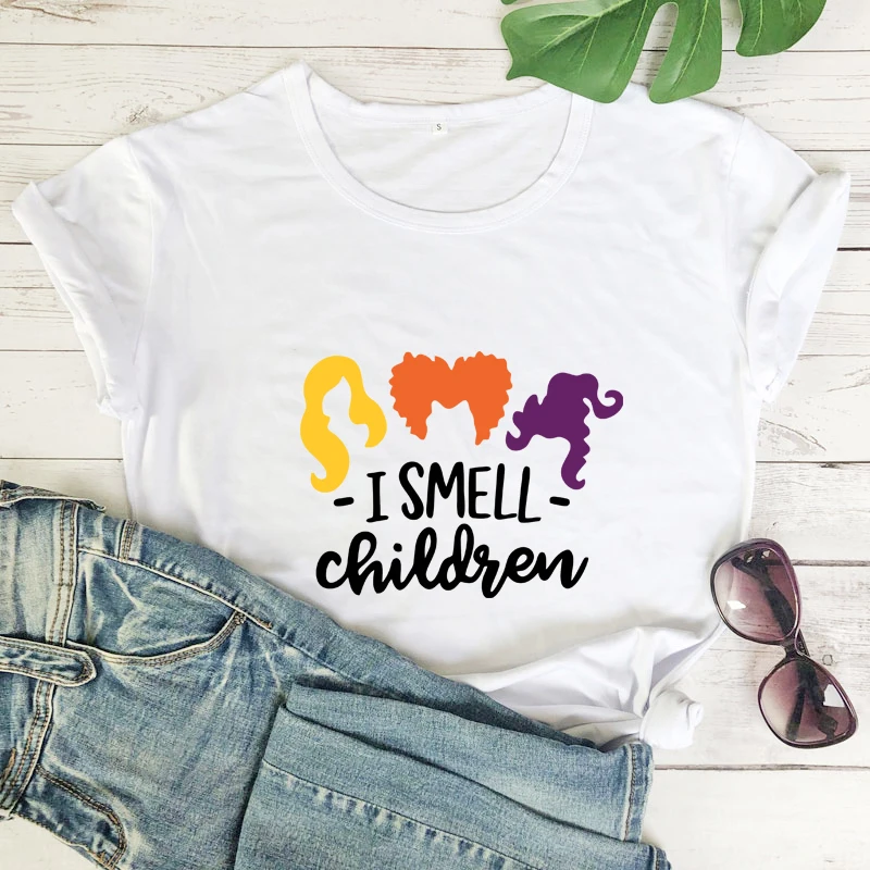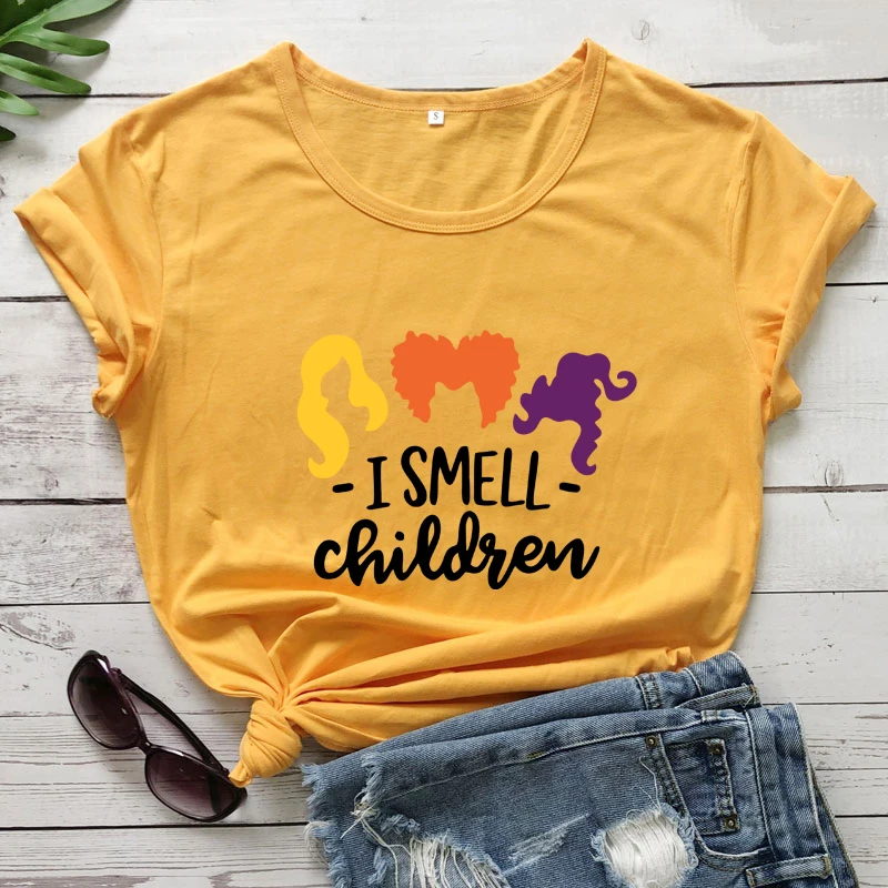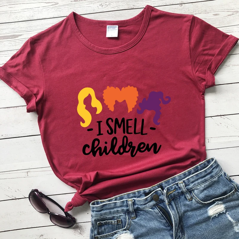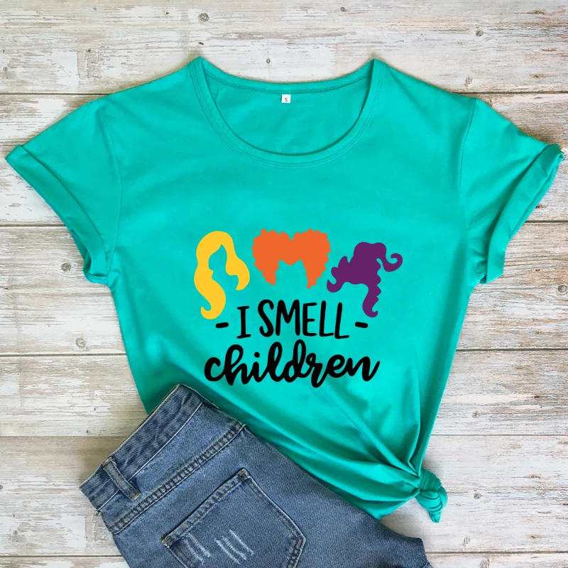 Цветная детская футболка I Smell, ретро футболка с ведьмой на Хэллоуин, забавная Женская Волшебная Осенняя Праздничная футболка, топ