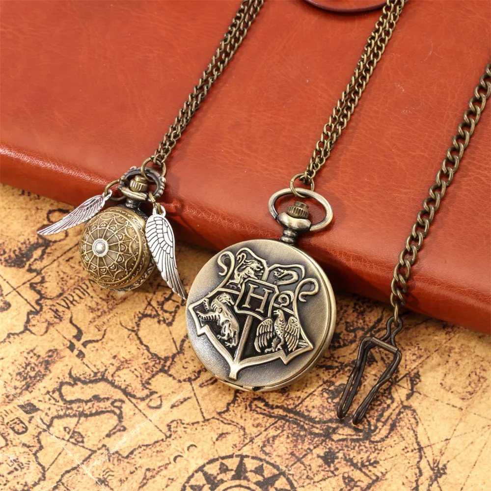 Бронзовое ожерелье и часы в стиле панк, набор из трех предметов унисекс, подвеска, кварцевые карманные часы, набор для подарка