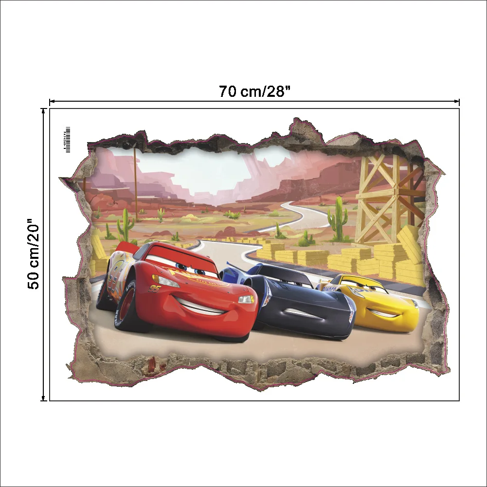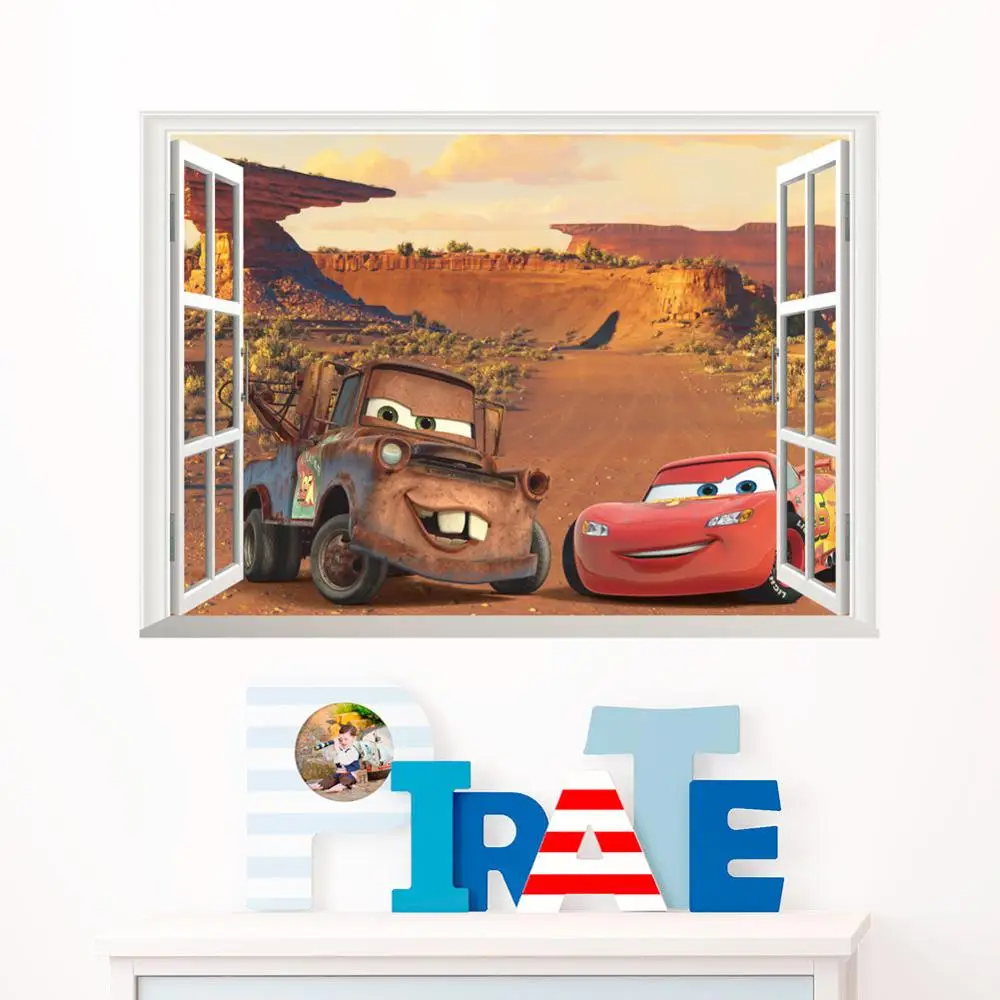 3d наклейки на стену в виде диснеевских автомобилей и окон для детс...