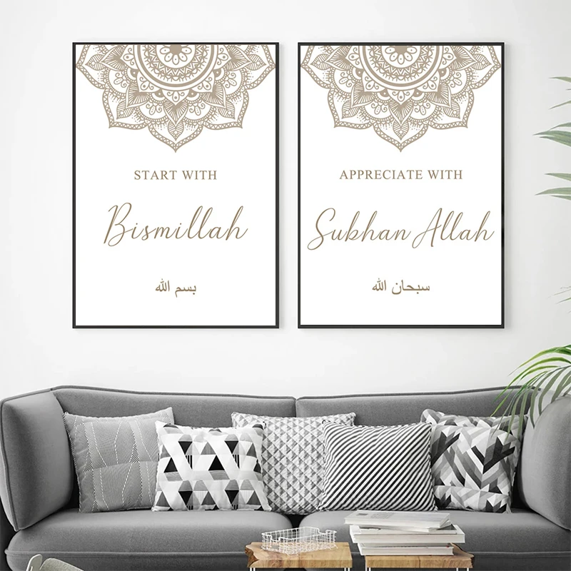 Современный мусульманский плакат Бисмиллах Бохо бежевый цветочный х...