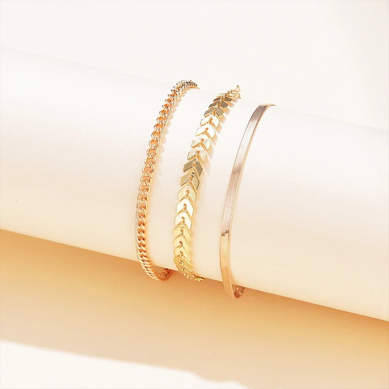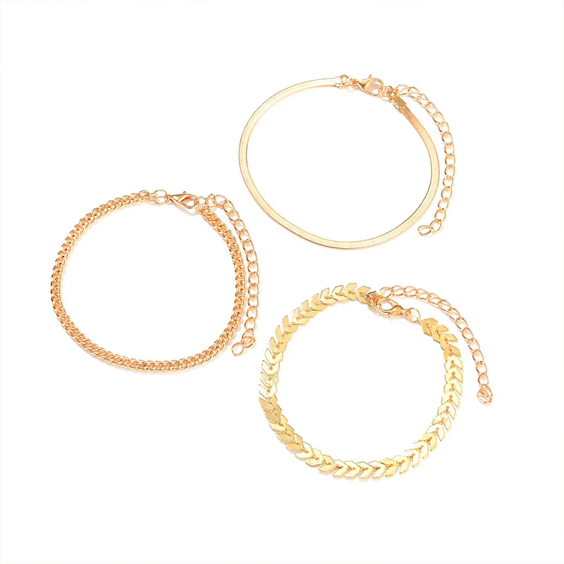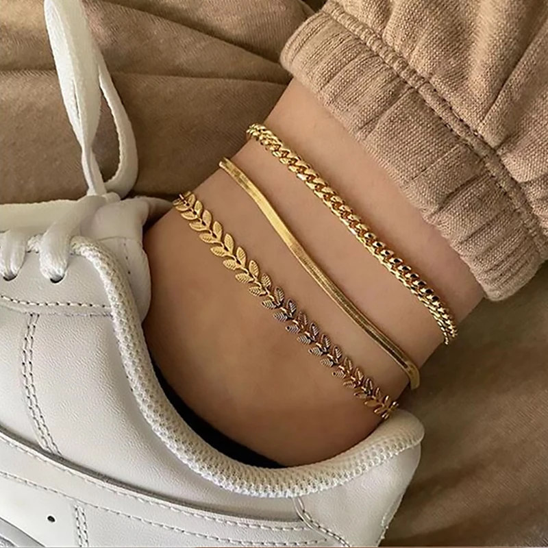3 шт.компл. простые ножные браслеты золотого цвета на цепочке для женщин, Пляжная бижутерия на ногу, цепочка на ногу, браслеты на лодыжку, женские аксессуары