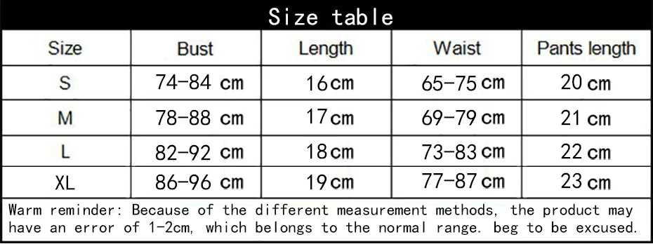 Товар включает: бюстгальтер, пояс, Т-образную спинку.Информация о размере:S: обхват груди: 64-84 см, длина: 16 см, обхват талии: 69-79 см, длина платья: 10,5 см, Штаны эластичная резинка на талии: 67-77 см, Штаны Длина: 20 см;М: обхват груди: 68-88 см, длина: 17 см, платье, эластичная резинка на талии: 73-83 см, длина платья: 11,5 см, Штаны обхват талии: 71-81 см, Штаны Длина: 21 см;L: обхват груди: 72-92 см, длина: 18 см, платье, эластичная резинка на талии: 77-87 см, длина платья: 12,5 см, Штаны эластичная резинка на талии: 75-85 см, Штаны Длина: 22 см;XL: обхват груди: 76-96 см, длина: 19 см, платье, эластичная резинка на талии: 81-91 см, длина платья: 13,5 см, Штаны эластичная резинка на талии: 79-89 см, Штаны Длина: 23 см.