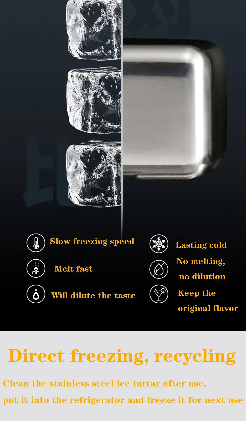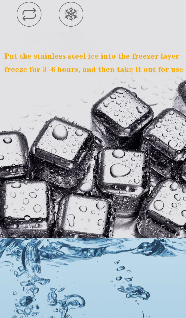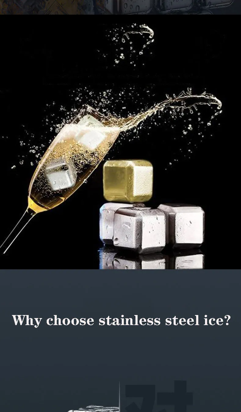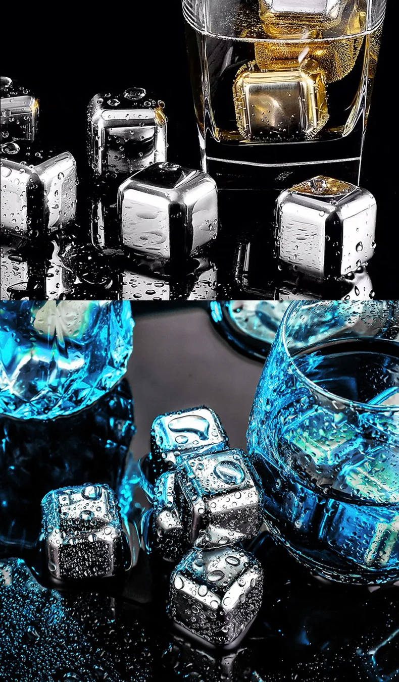 Кубики льда из нержавеющей стали 304, металлический быстрозамороженный клетчатый лед, зеркальный охладитель, камни для виски, держат холод дольше
