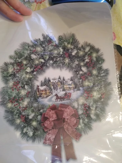 Выглядит как на фото продовца . Положила под пресс чтобы рассправился и выглядел как постэр .