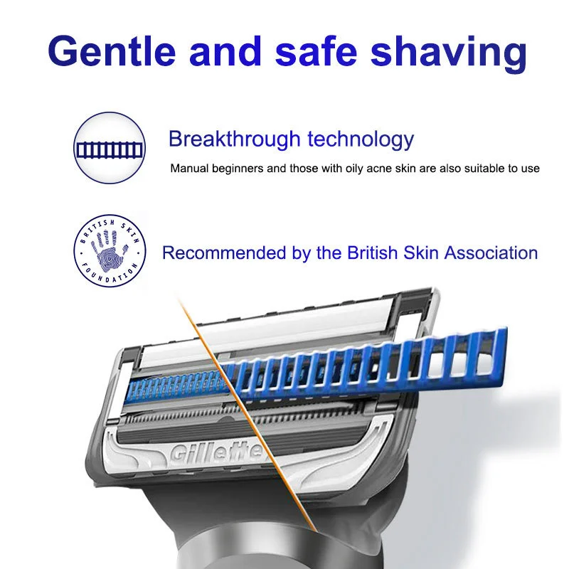 -Gillette Fusion5 ProShield Chill бритвы для мужчин имеют 5 лезвий против трения для невероятного комфорта.