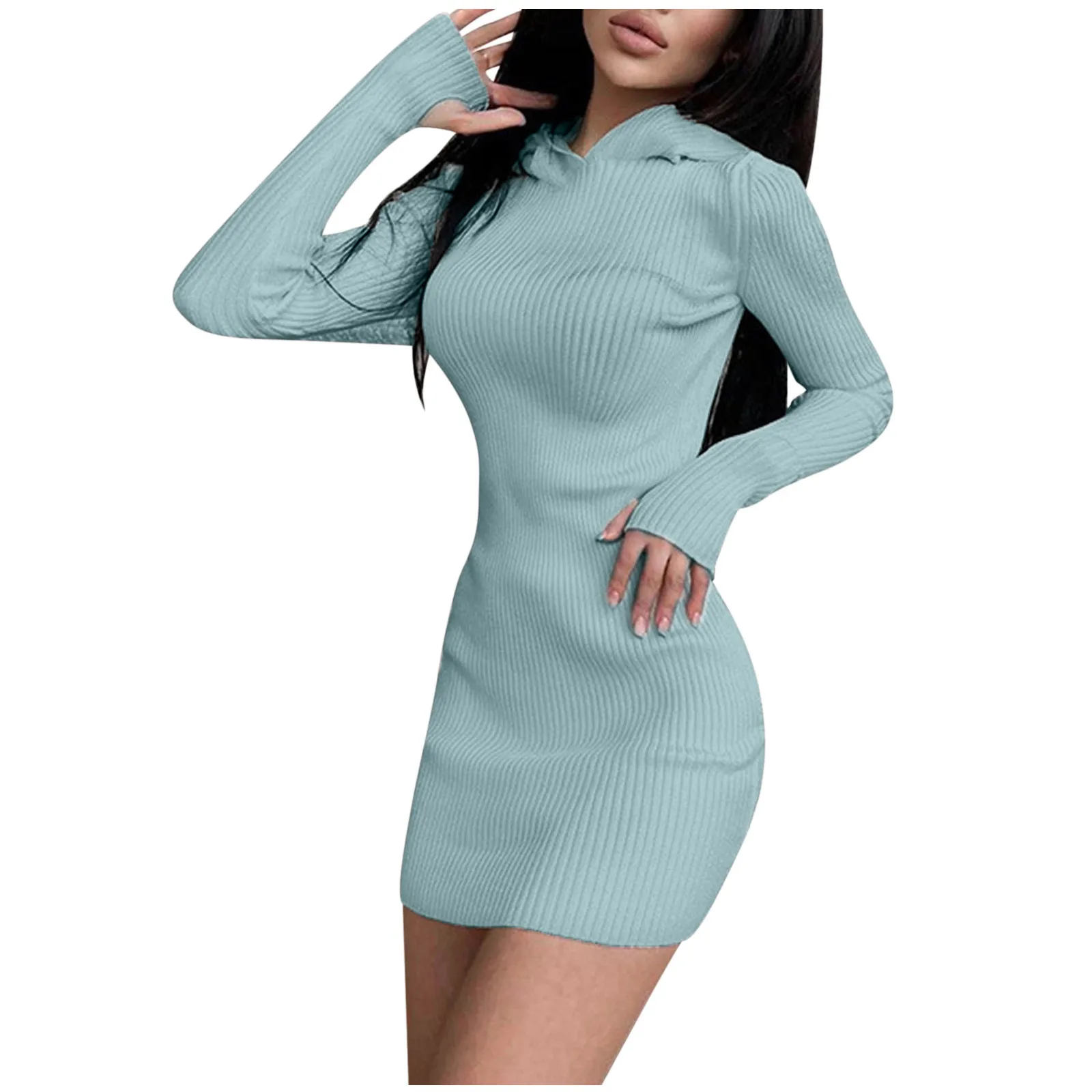Женское сексуальное однотонное платье-свитер с длинным рукавом