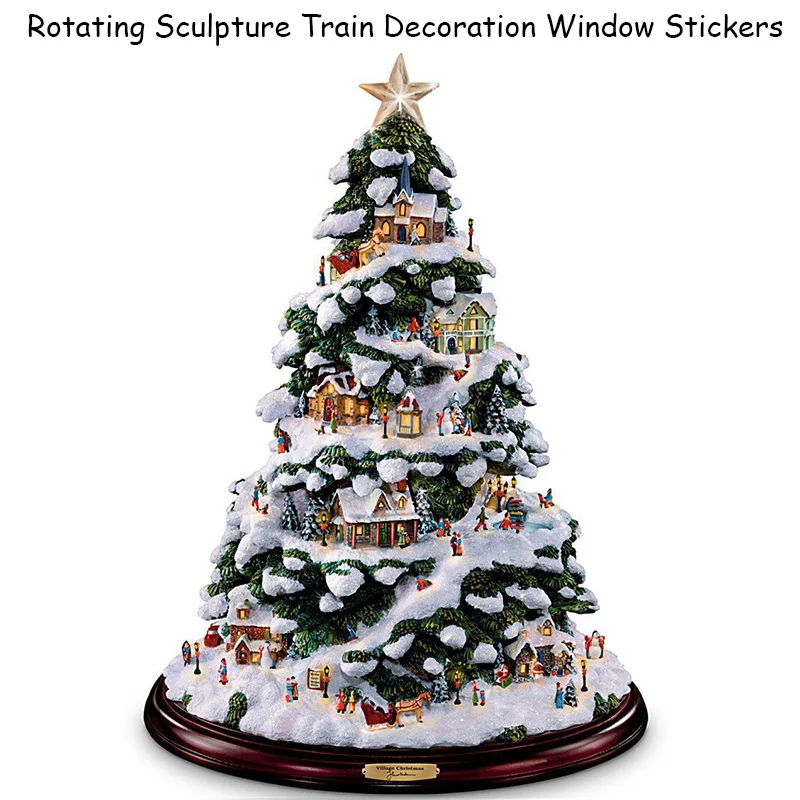 Рождественская елка, вращающаяся скульптура, наклейка на окно, поез...