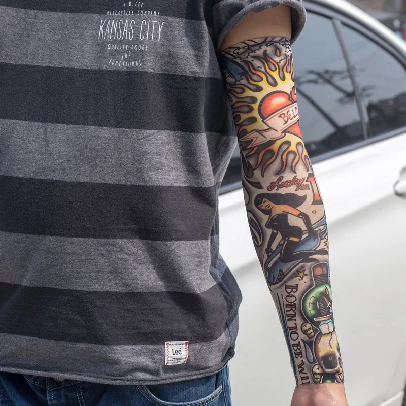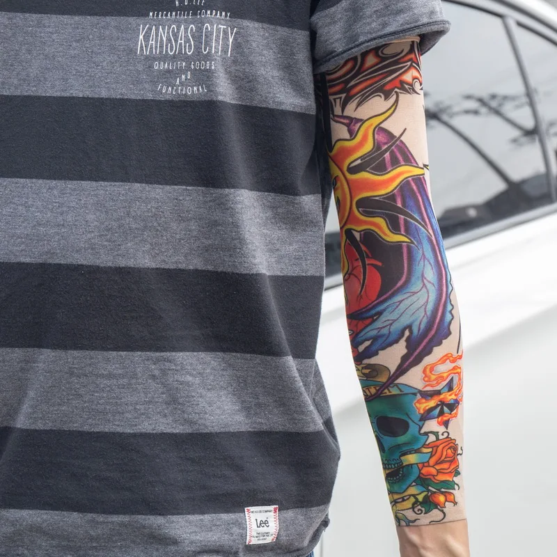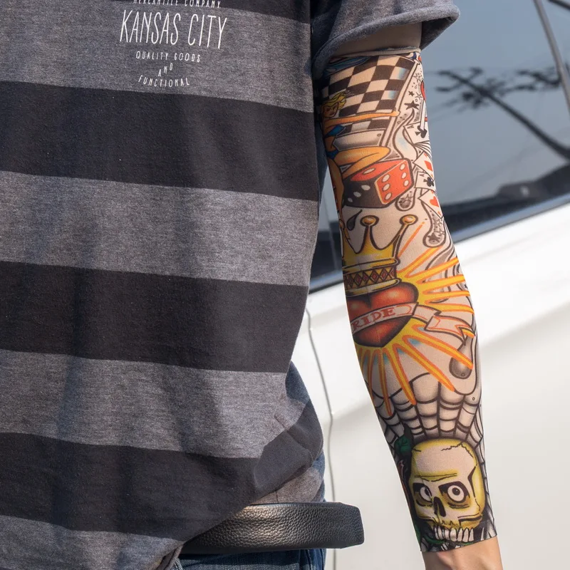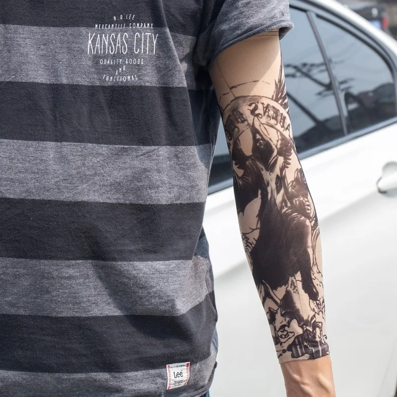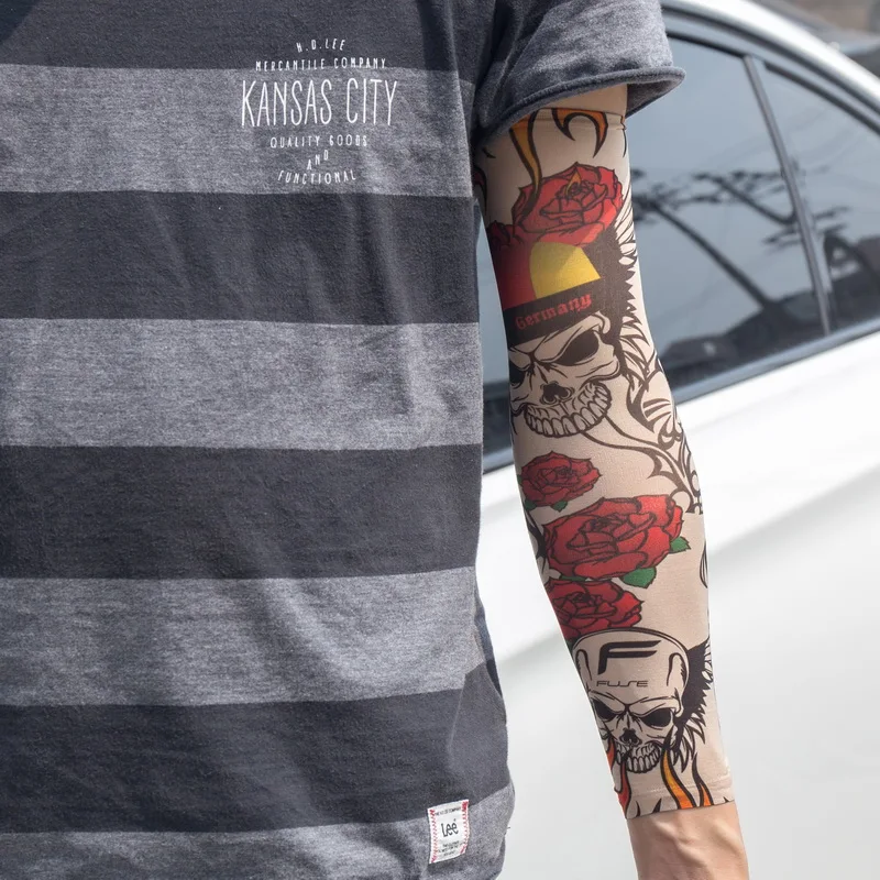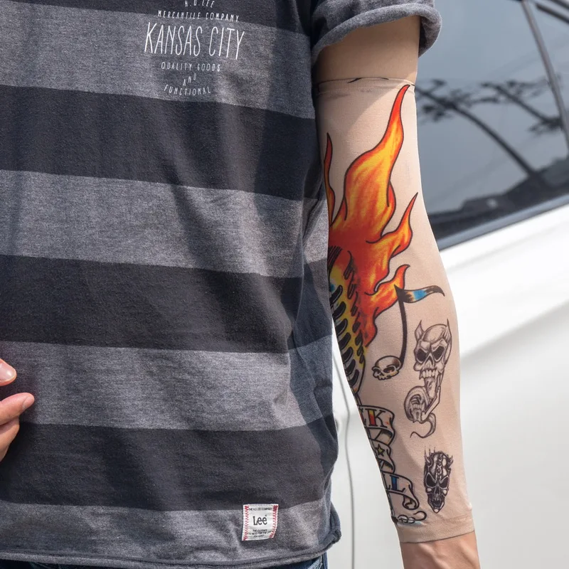 Наружные велосипедные рукава с принтом и татуировкой, 1 шт., нарукавники с УФ-защитой для горных велосипедов, велосипедные рукава, защита рук, рукава для верховой езды