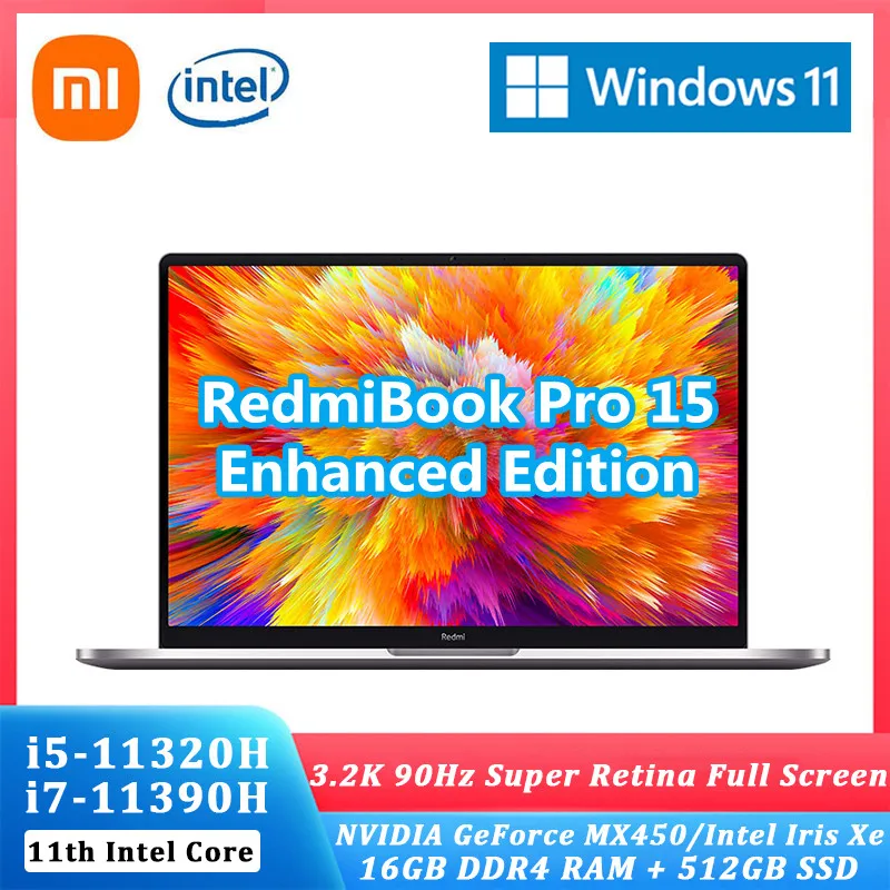 Новый ноутбук Xiaomi RedmiBook Pro 15, улучшенный процессор Intel Core i7-11390Hi5-11320H, ноутбук 16 Гб RAM 512 ГБ 3,2 K, ультратонкий компьютер