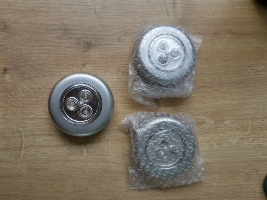Отличные фонарики, достаточно яркие, для работы требуются три стандартных батарейки, которые не входят в комплект, легко и надёжно клеятся к разным поверхностям. Рекомендую к покупке)
