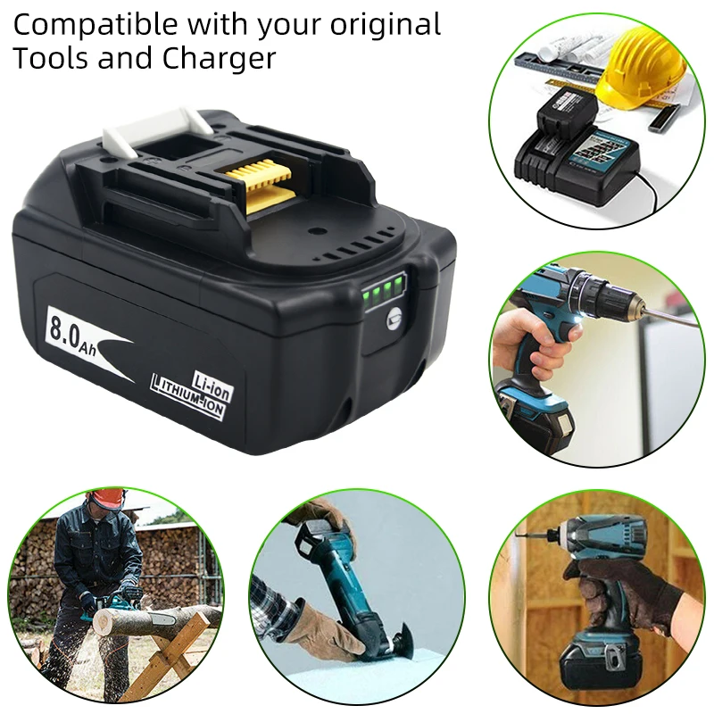 Сбалансированная защита BL1860 BL1880 18 в 6000 мАч8000 мАч литий-ионная аккумуляторная батарея для Makita BL1840 BL1850 BL1830 BL1860B LXT400