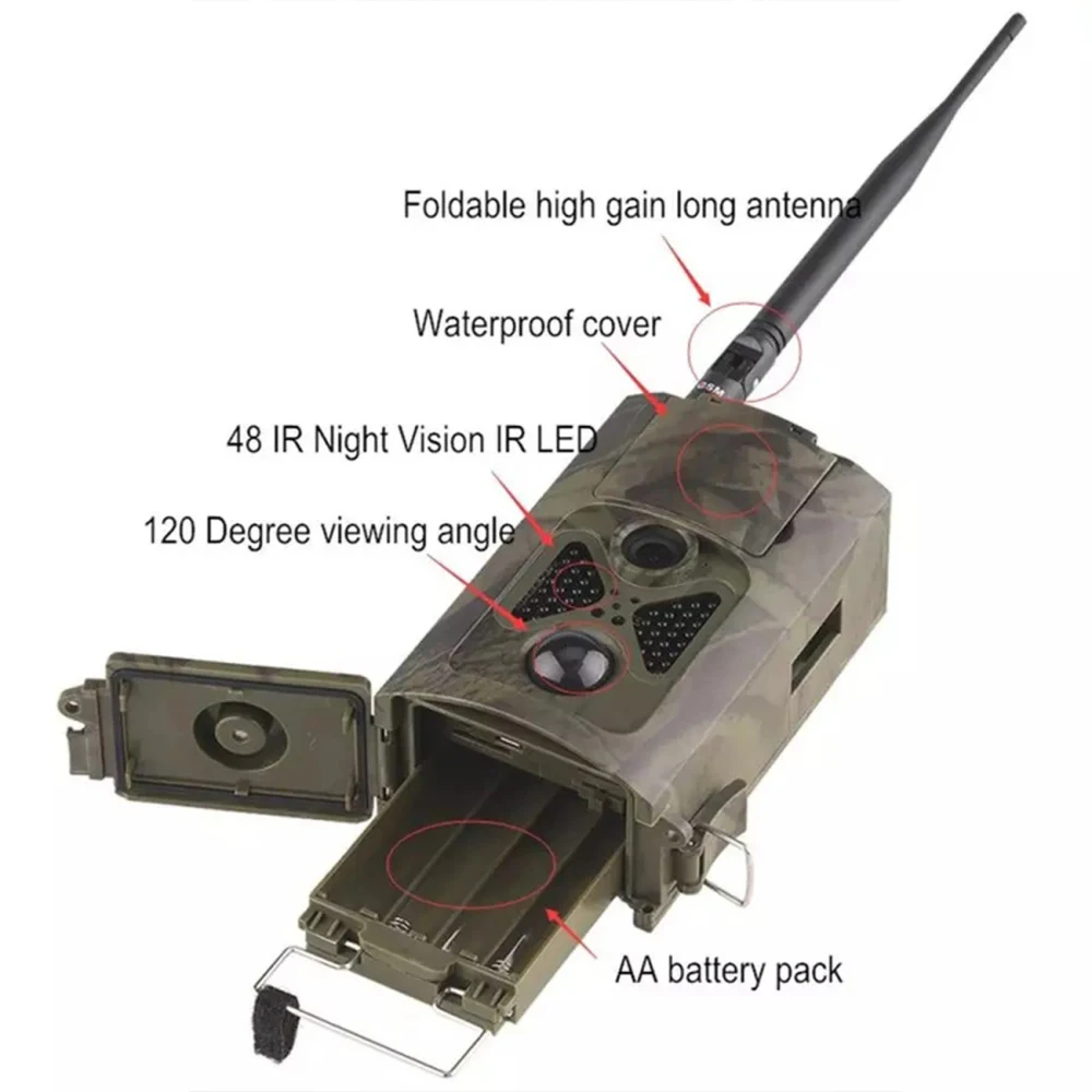 -Инфракрасный триггер движения цифровая камера с тремя режимами: камера, видео, камера + видео.-Захватывает высококачественные изображения и записывает HD видео клипы 1080P, он может быть срабатывает сразу любым движением человека (или животных), делать фото 16 МП и видео 1080P с помощью инфракрасного датчика.-Храните фотографии/видео в tf-карте на 64 Гб. (Не входит в комплект).-Отметка даты, времени, температуры и Луны на каждой фотографии. Отправка изображения через 2G GSM MMS или GPRS; Четыре полосы: 850/900/1800/1900 МГц.-Поддерживается русский, датский, голландский, польский, английский, французский, немецкий, испанский, португальский, шведский, итальянский, финский и польский языки.