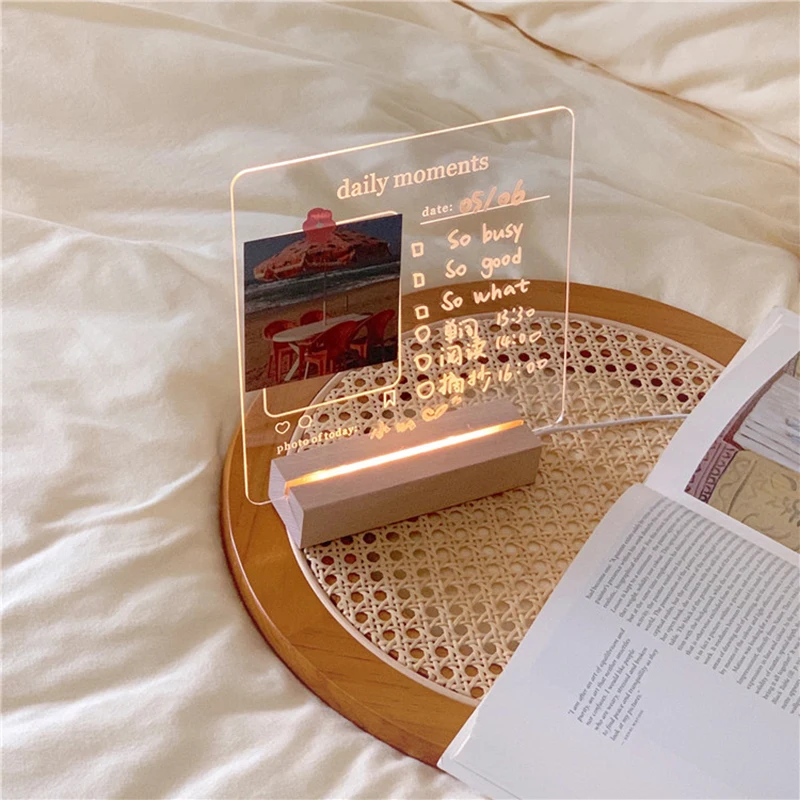 Акриловая доска для ежедневных фотографий, с USB-разъемом, с деревянной подставкой и держателем, светодиодная лампа, блокнот для записей, напоминание, планировщик, список дел
