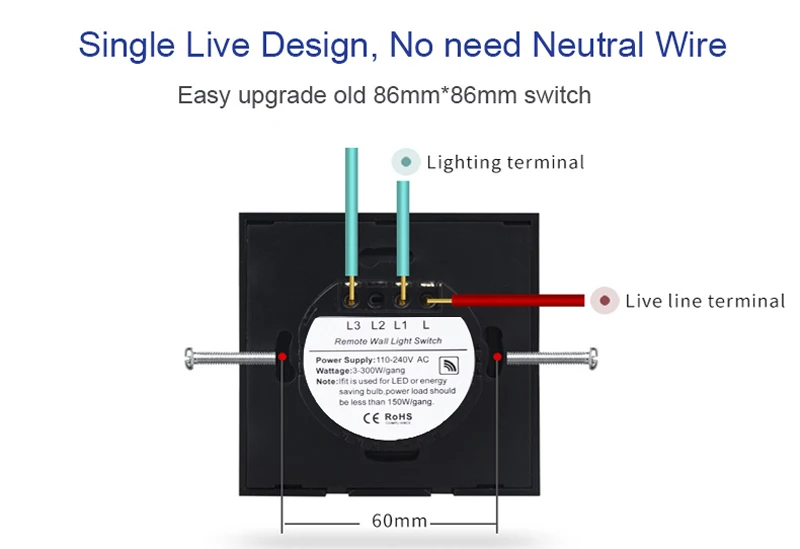 7. Одножильный провод управления, легко установить, заменить старый переключатель непосредственно.