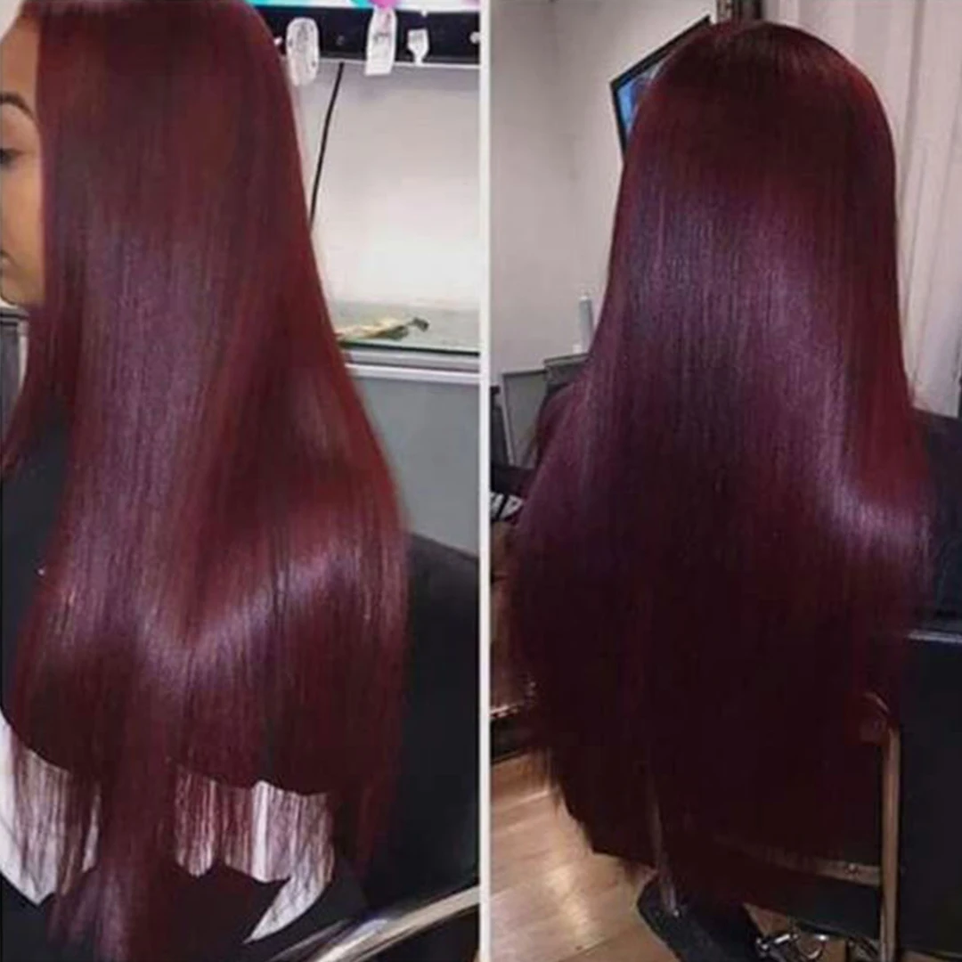 Перуанские прямые волосы 13X 4, парик на сетке спереди, парики из человеческих волос для женщин 99J, красные бордовые, предварительно выщипанные 180% натуральные волосы Remy
