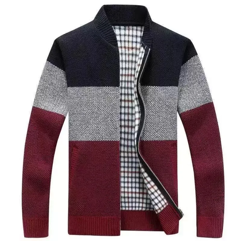 Мужской повседневный толстый теплый кардиган в стиле пэчворк, кашем...