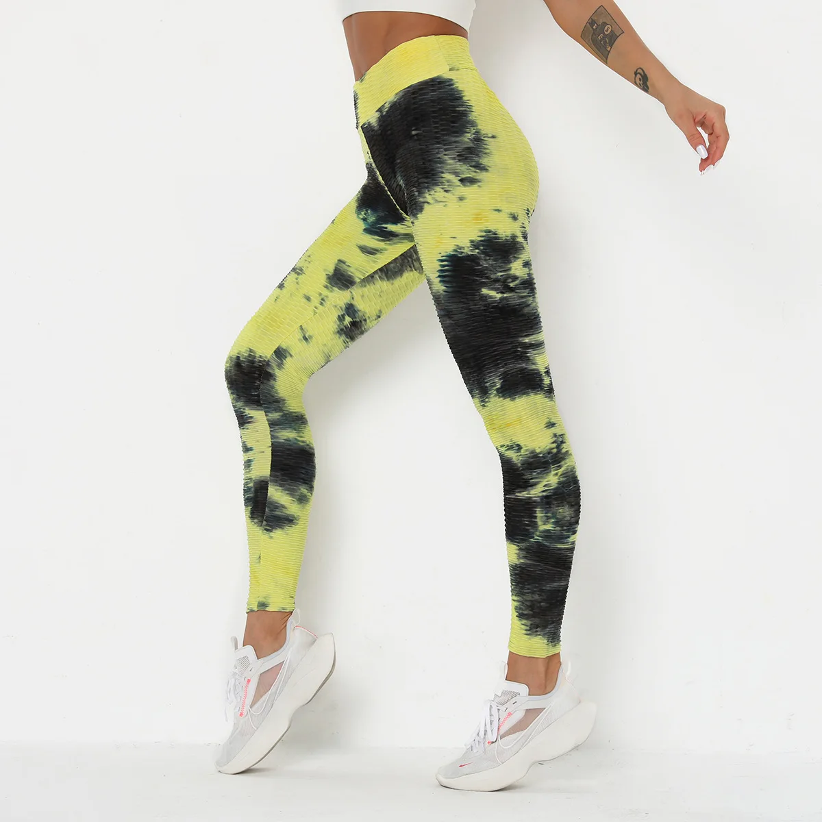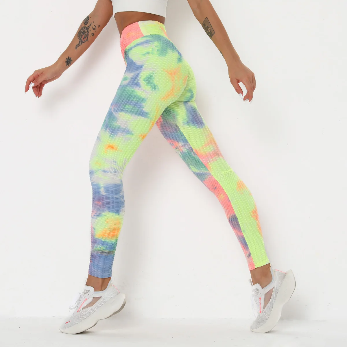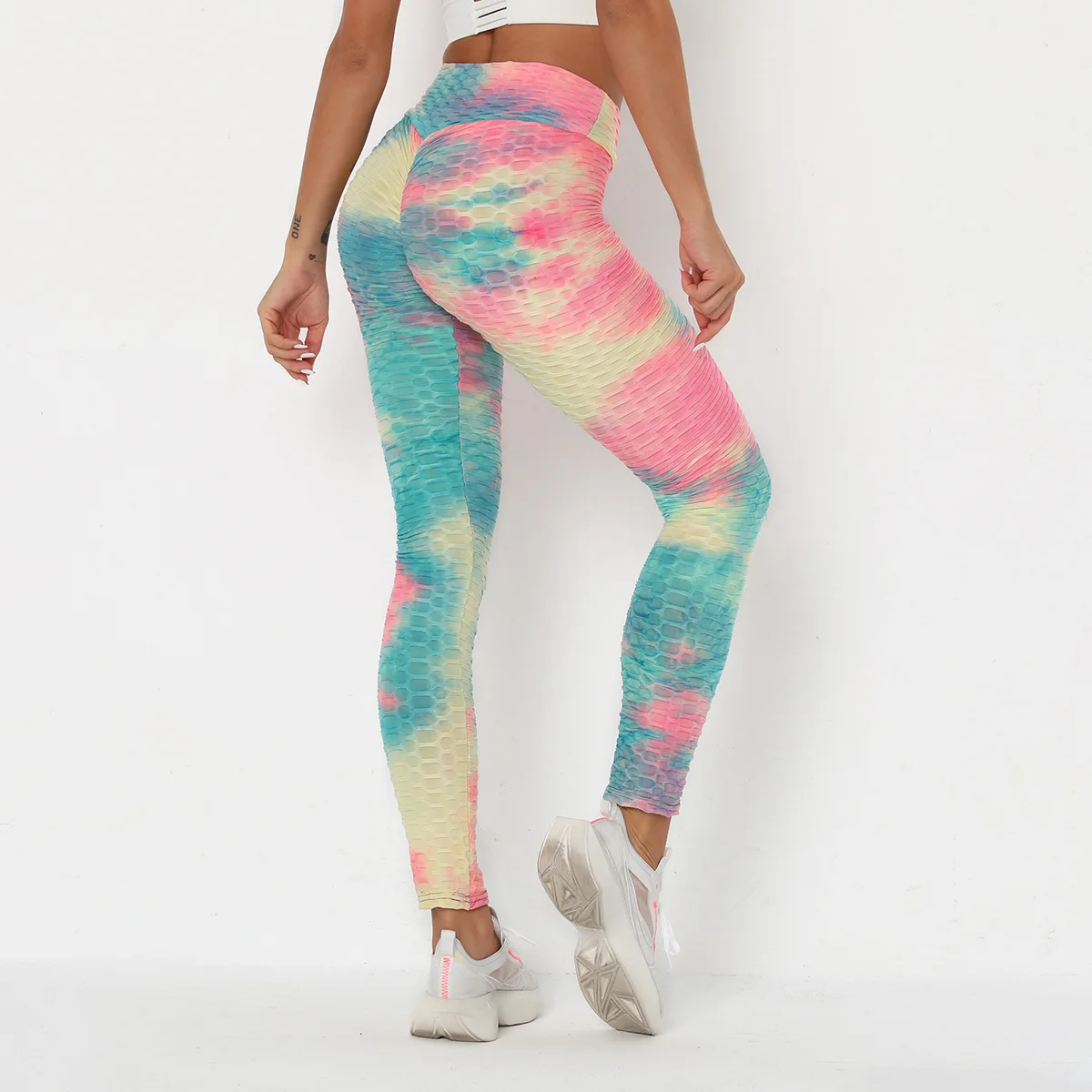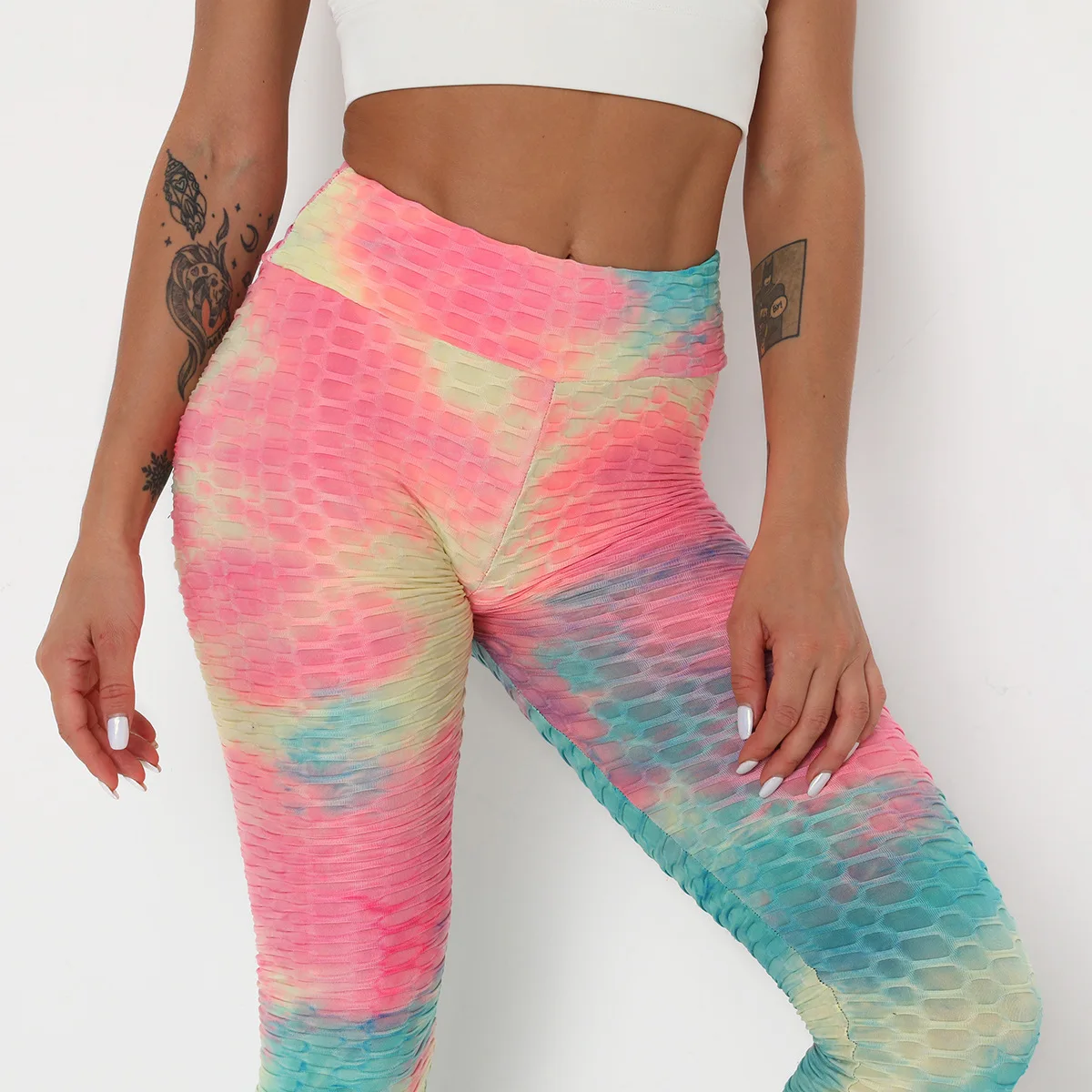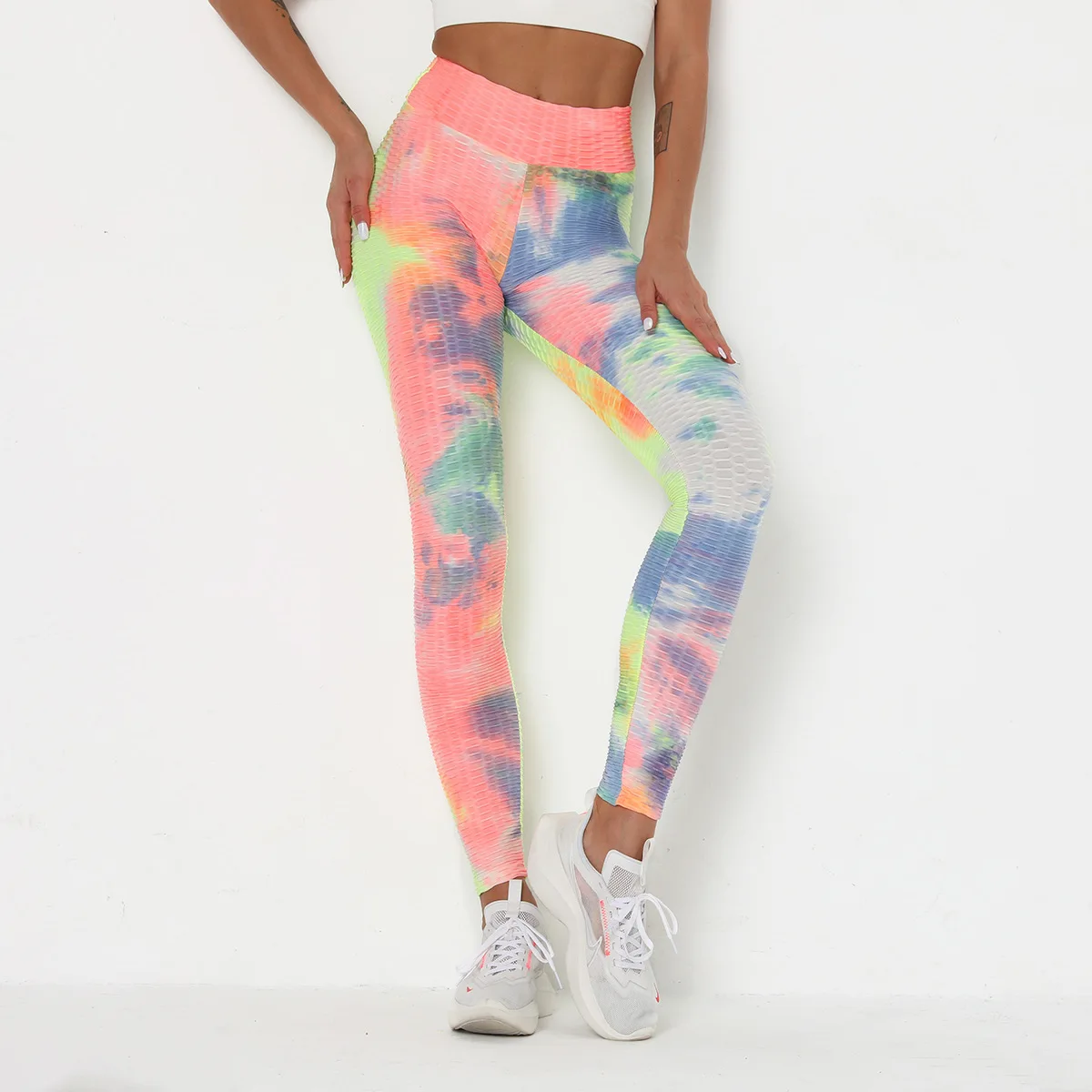 Женские штаны для йоги с принтом тай-дай, разноцветные жаккардовые леггинсы, зауженные, подтягивающие бедра, для фитнеса