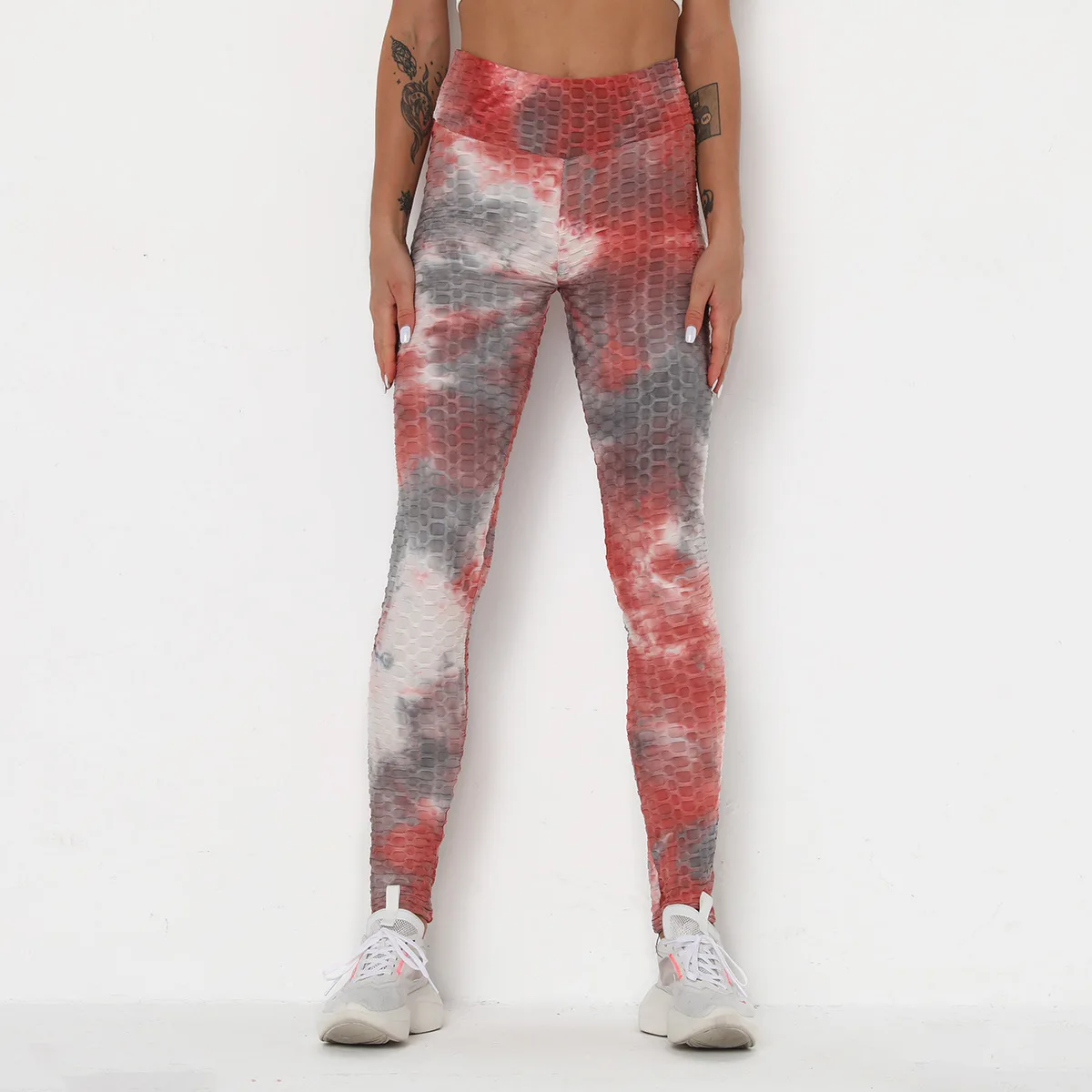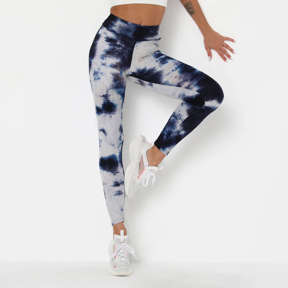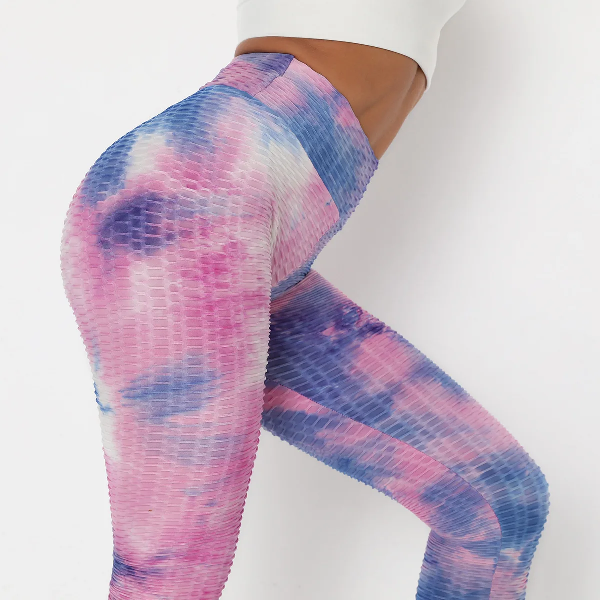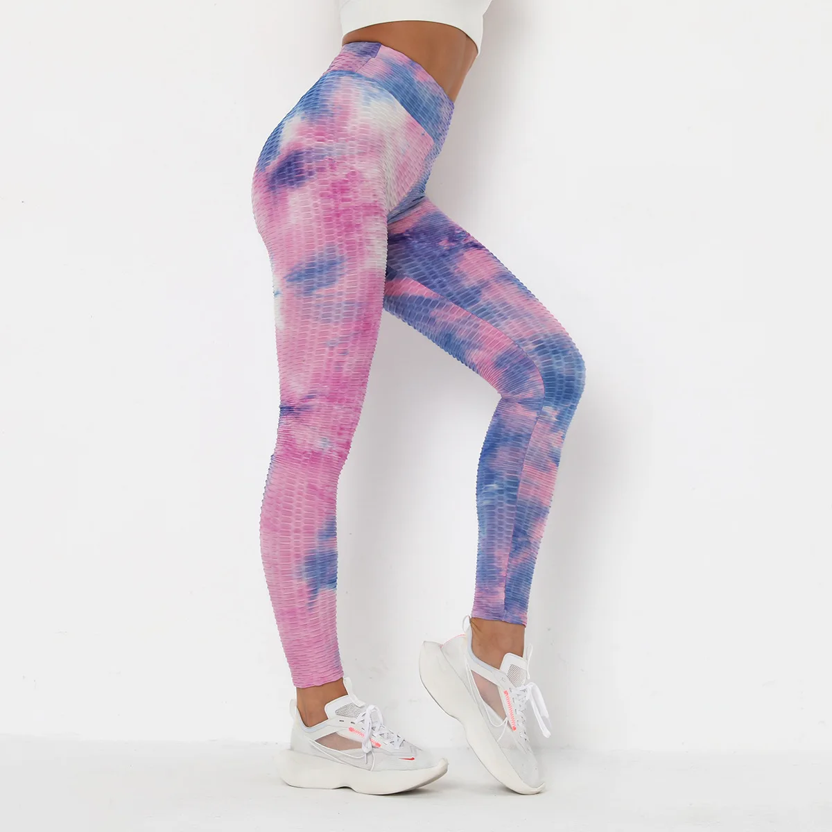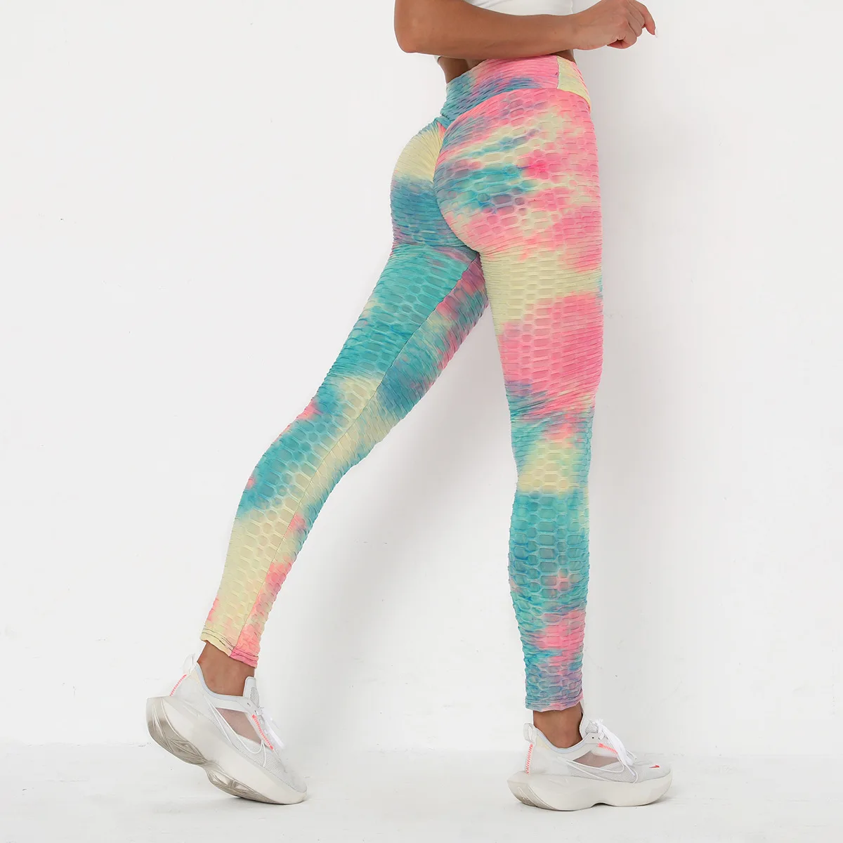 Женские штаны для йоги с принтом тай-дай, разноцветные жаккардовые леггинсы, зауженные, подтягивающие бедра, для фитнеса