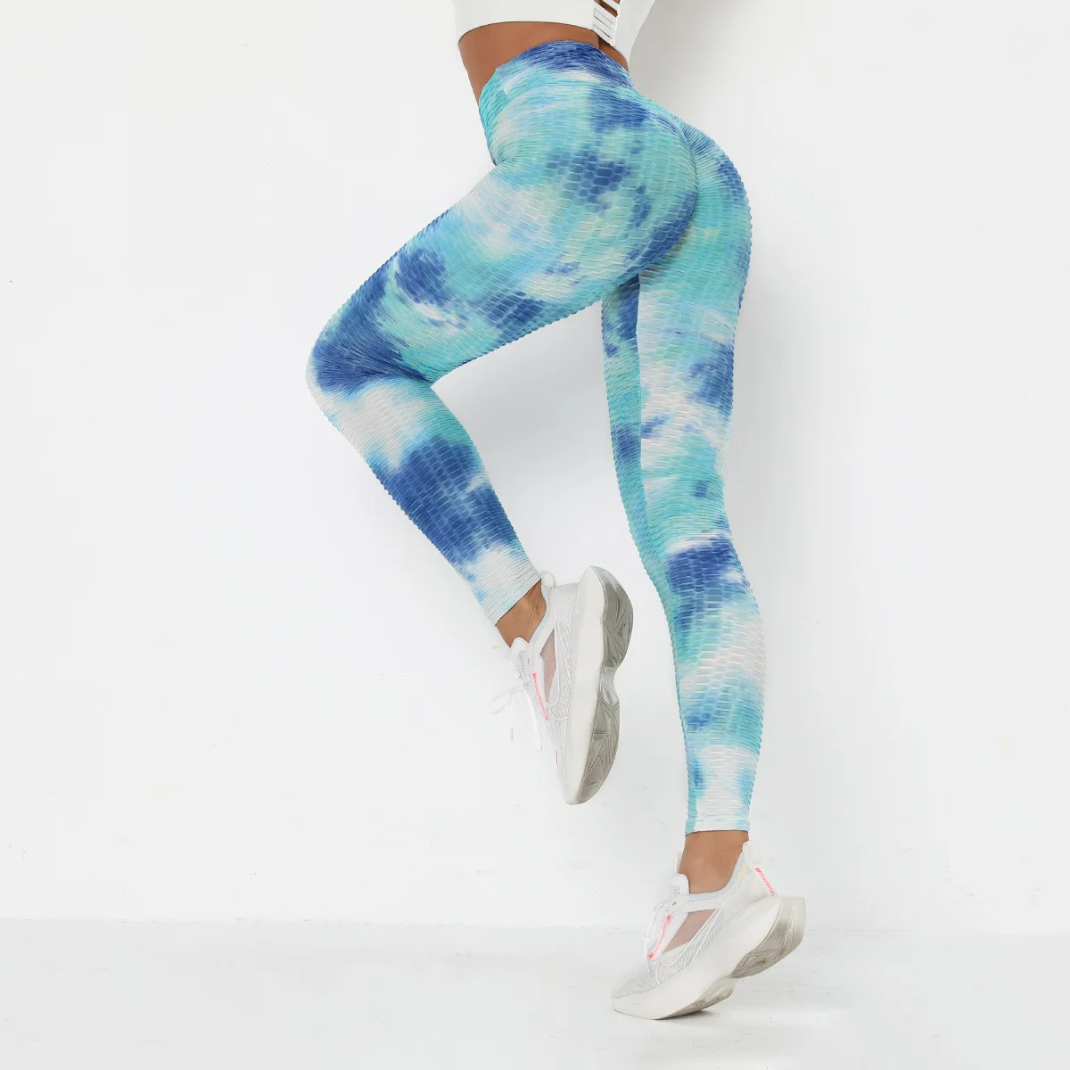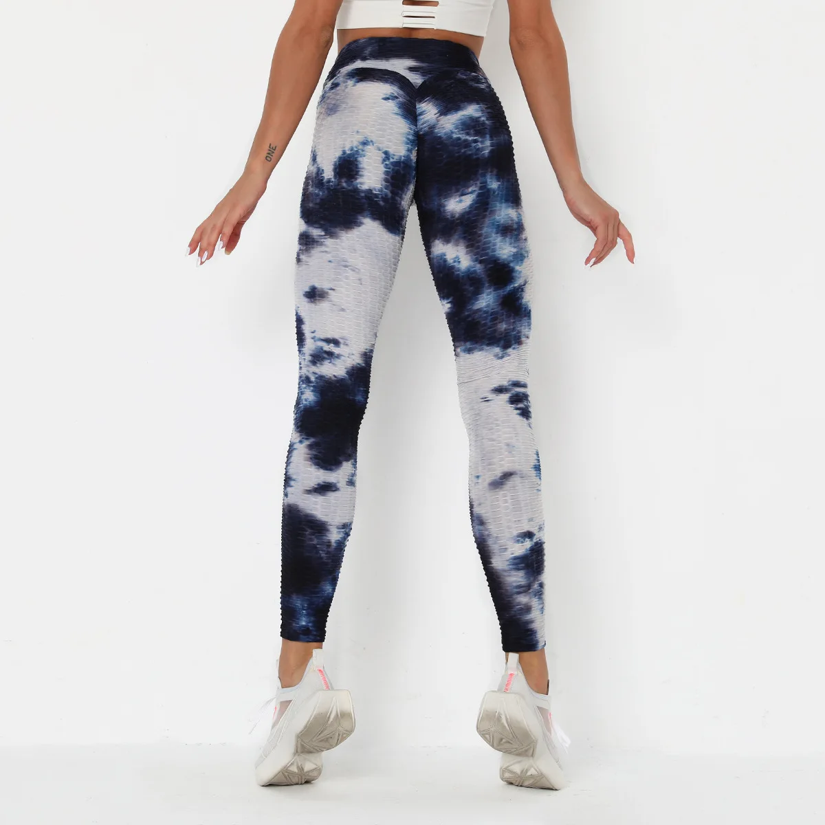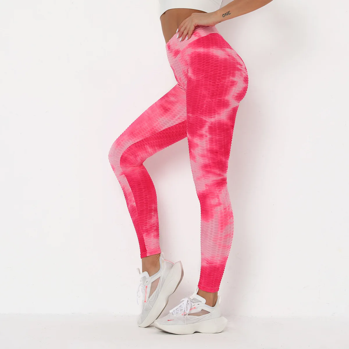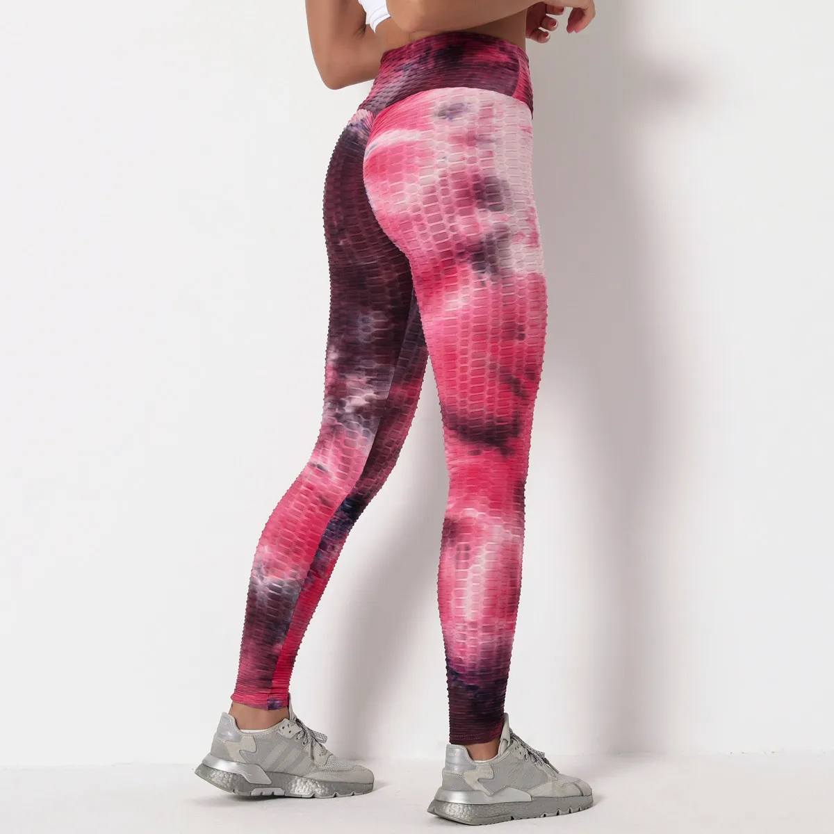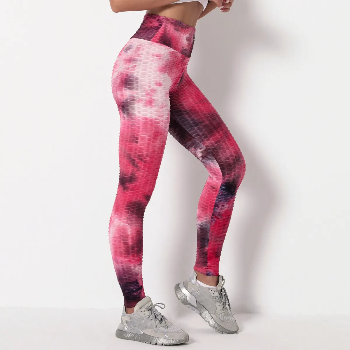 Женские штаны для йоги с принтом тай-дай, разноцветные жаккардовые леггинсы, зауженные, подтягивающие бедра, для фитнеса