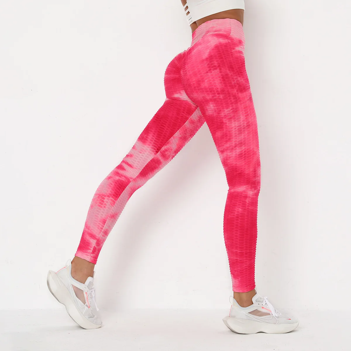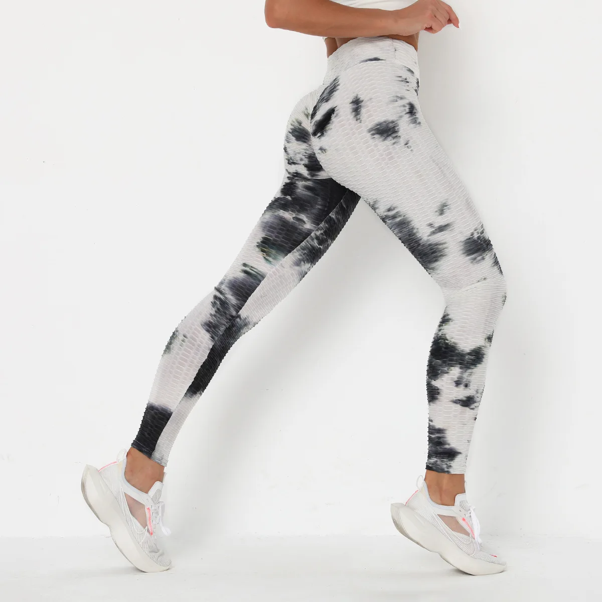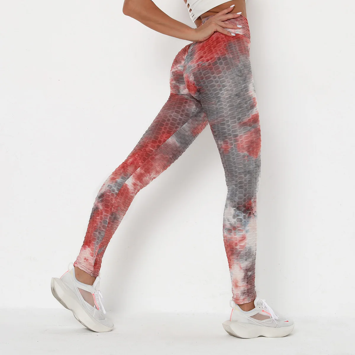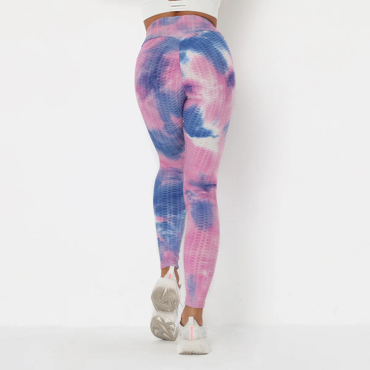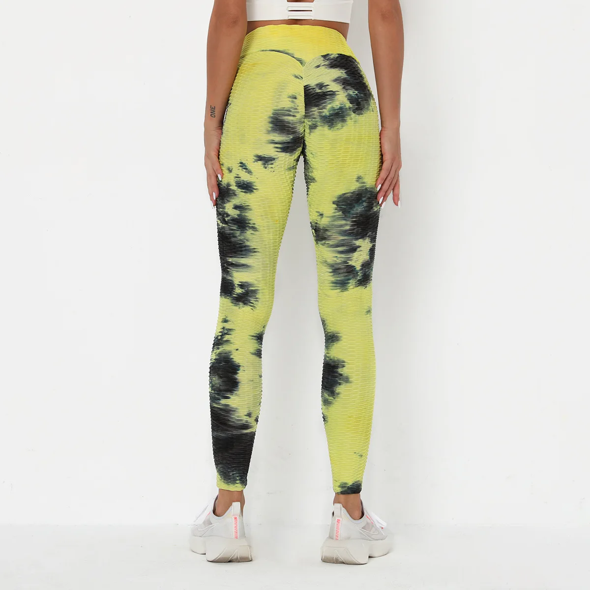 Женские штаны для йоги с принтом тай-дай, разноцветные жаккардовые леггинсы, зауженные, подтягивающие бедра, для фитнеса