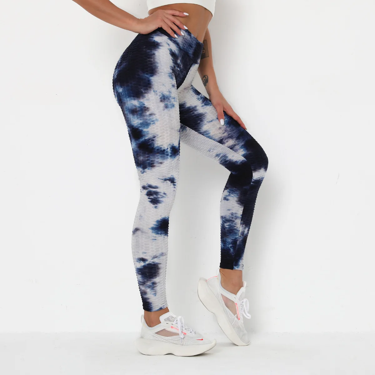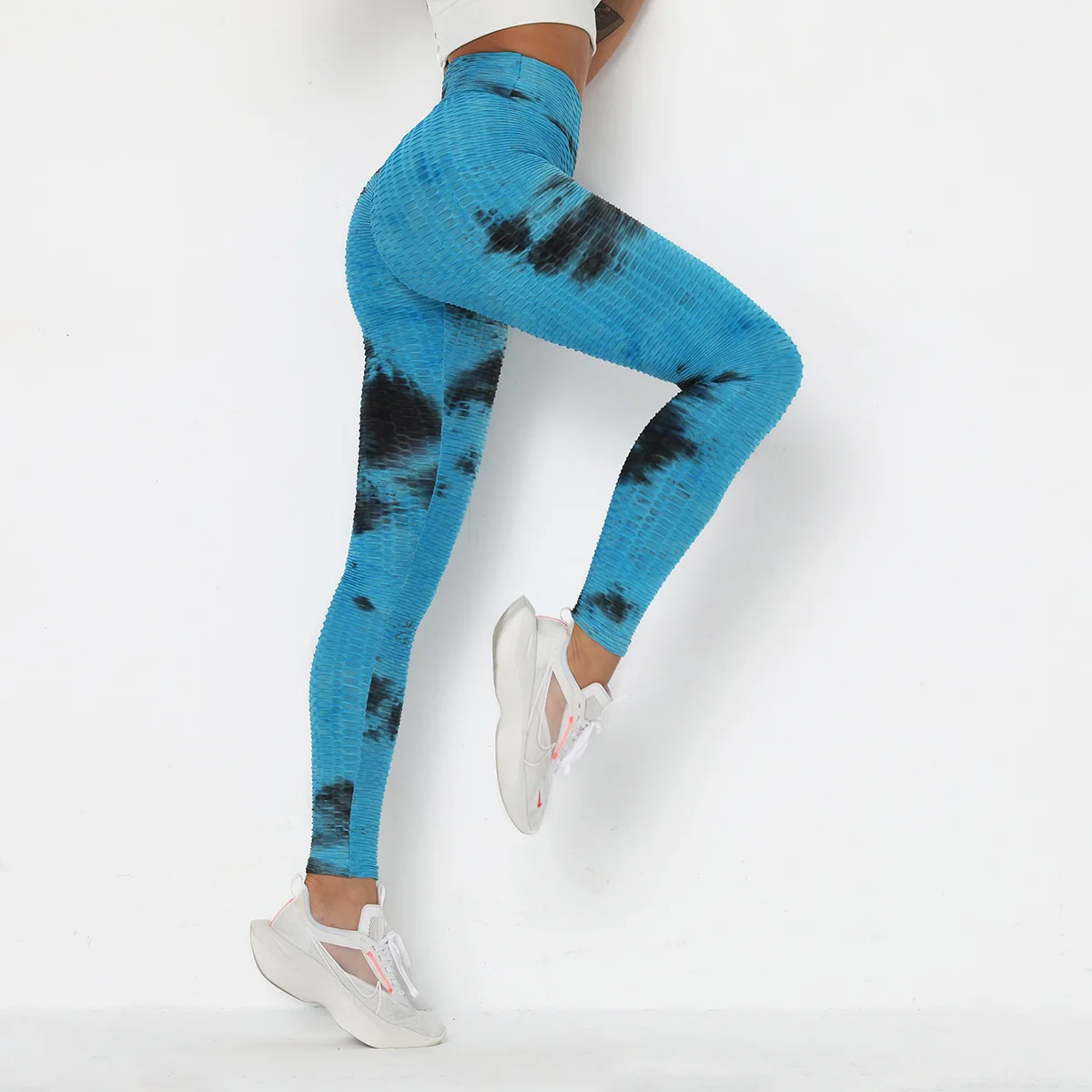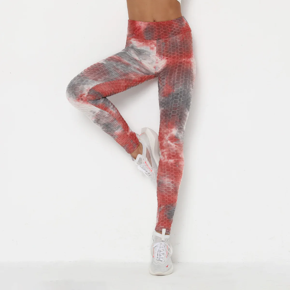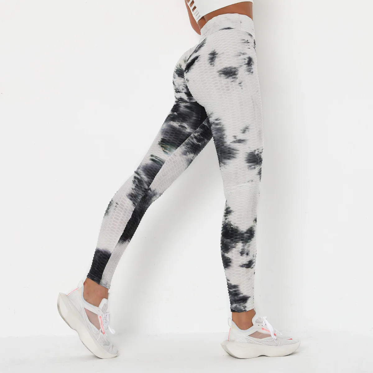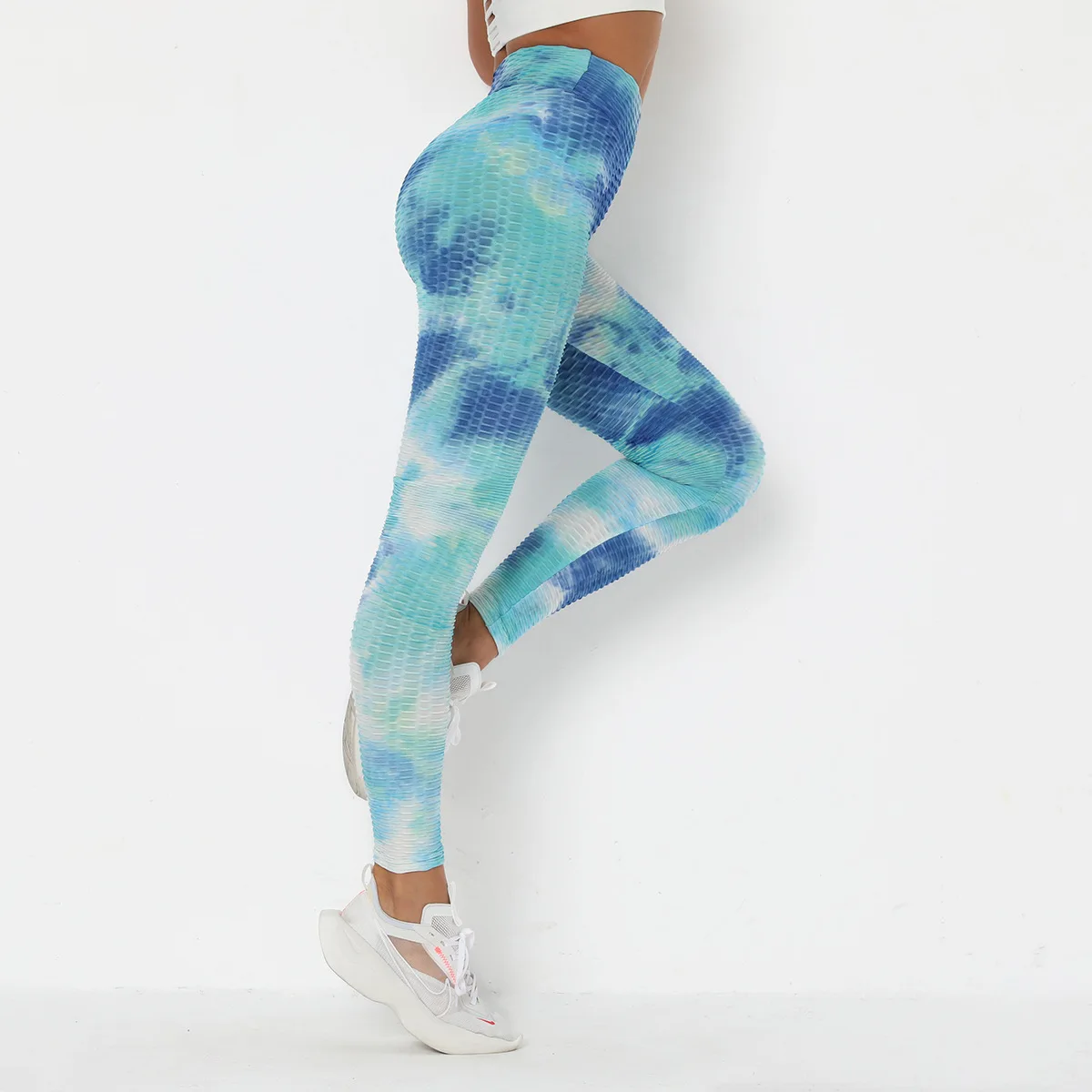 Женские штаны для йоги с принтом тай-дай, разноцветные жаккардовые леггинсы, зауженные, подтягивающие бедра, для фитнеса