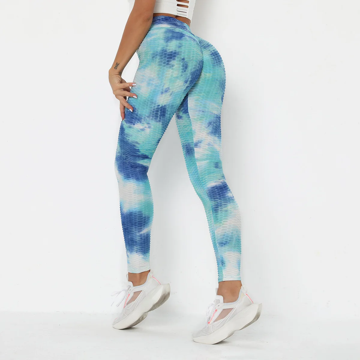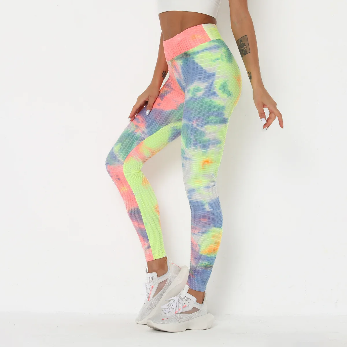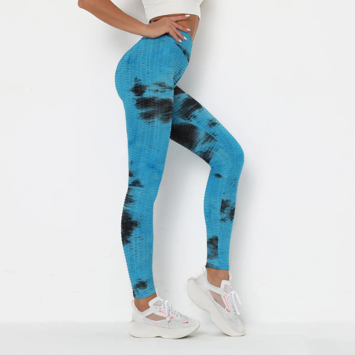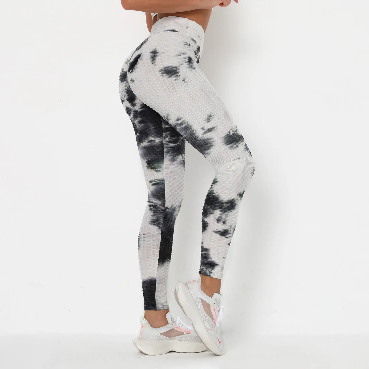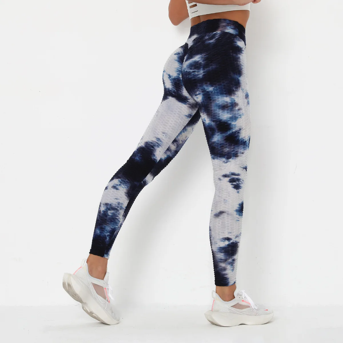 Женские штаны для йоги с принтом тай-дай, разноцветные жаккардовые леггинсы, зауженные, подтягивающие бедра, для фитнеса